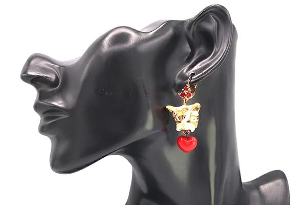 Pre-owned Dolce & Gabbana heart and dog drop earrings in beige with gold hardware. Women's.