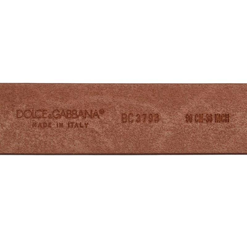 Pre-owned Dolce & Gabbana Logo Plate Belt 90.36 BC3793 Brown Leather and Metal Men's DOLCE&GABBANA