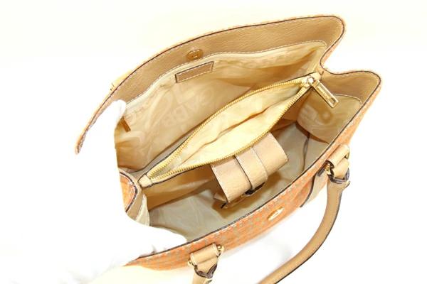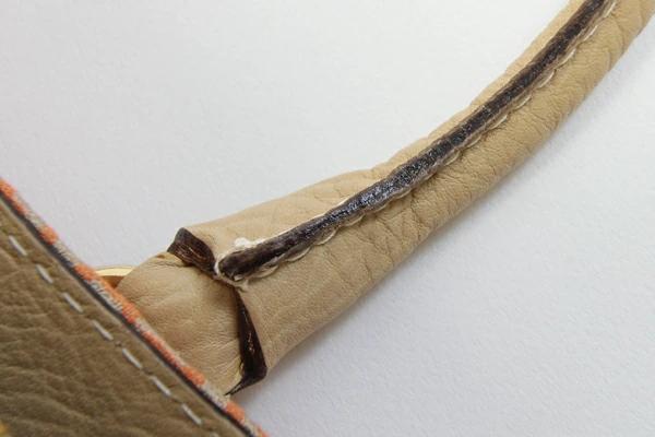 | 状態 | 外側:レザーに僅かな薄スレヨゴレ感あり。ハンドルのフチにスレ、コーティング割れあり。正面にコーティングはみ出し多少あり。 内側:ポケット部分に薄汚れあり。 金具:小キズ、スレあり。 |