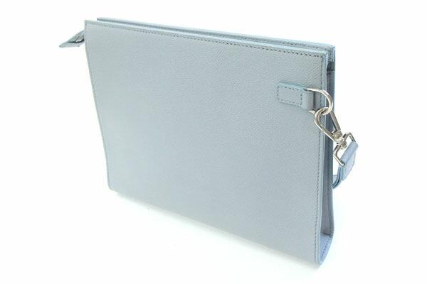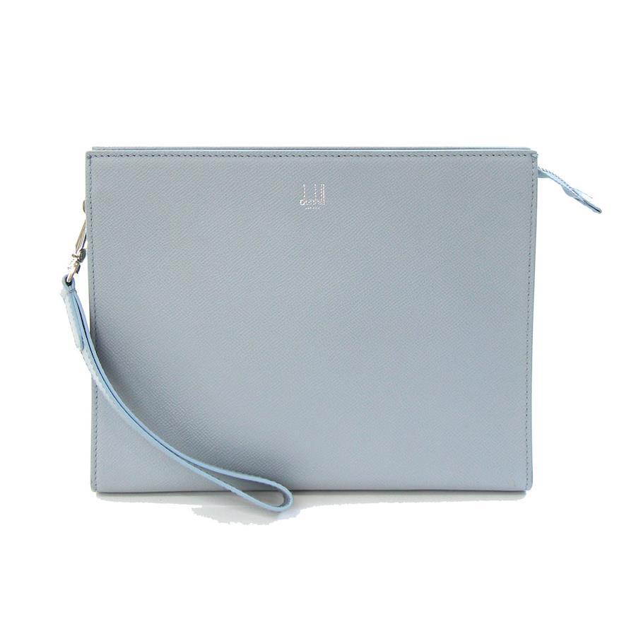 ダンヒルクラッチバッグライトブルー系レザー中古セカンドバッグロゴストラップ付スクエアメンズdunhill