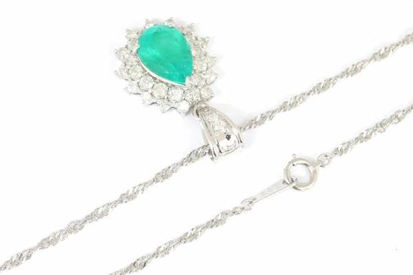 | コメント | 2ctオーバーの大粒エメラルドと、それを取り囲むように散りばめられた計1ct以上のダイヤモンドがエレガントなネックレスです。 |