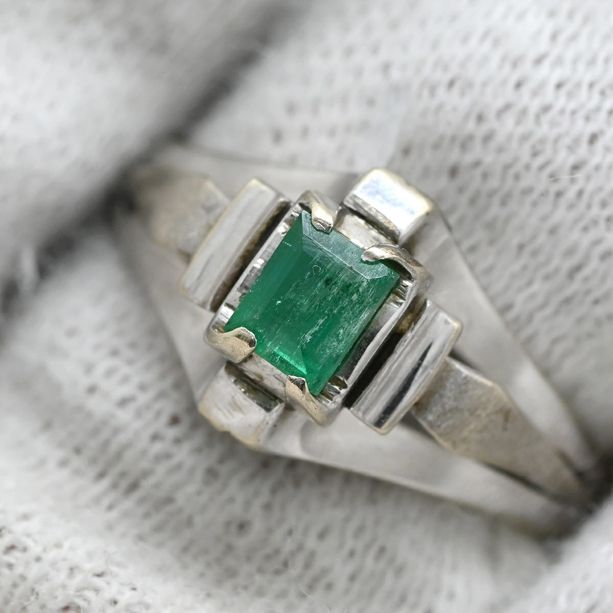 ノンブランド NON BRAND リング 指輪 エメラルド リング K14WG エメラルド ホワイトゴールド グリーン 緑 スクエア バケットミックスカット 1石 - 11号 メンズ レディース ユニセックス 【中古】