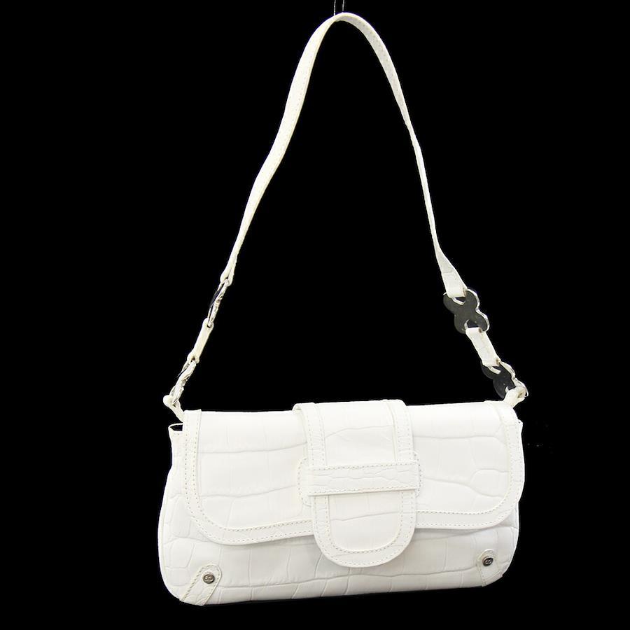 エスカーダワンショルダーバッグホワイトクロコ型押しレザー中古肩掛けミニバッグ鞄レディースESCADA