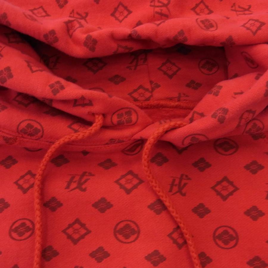 レッド系【モデル】モノグラム プリント プルオーバー フーディー パーカー レッド