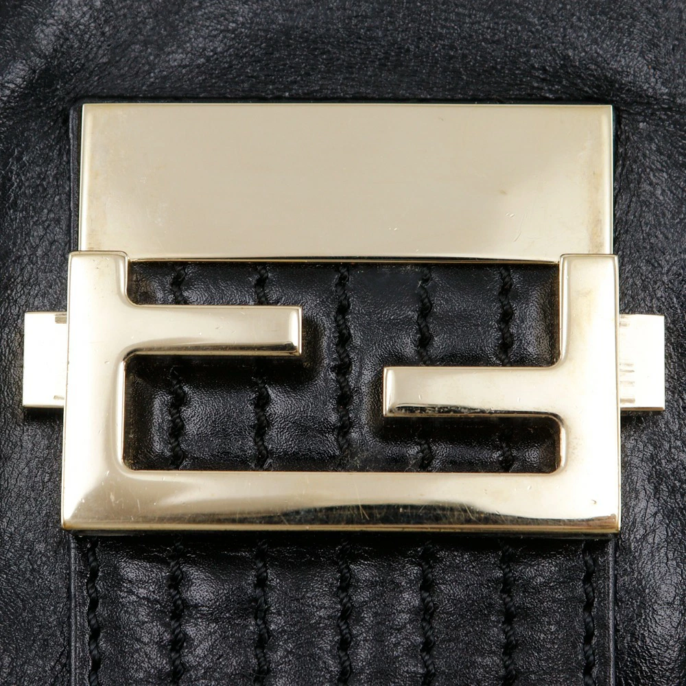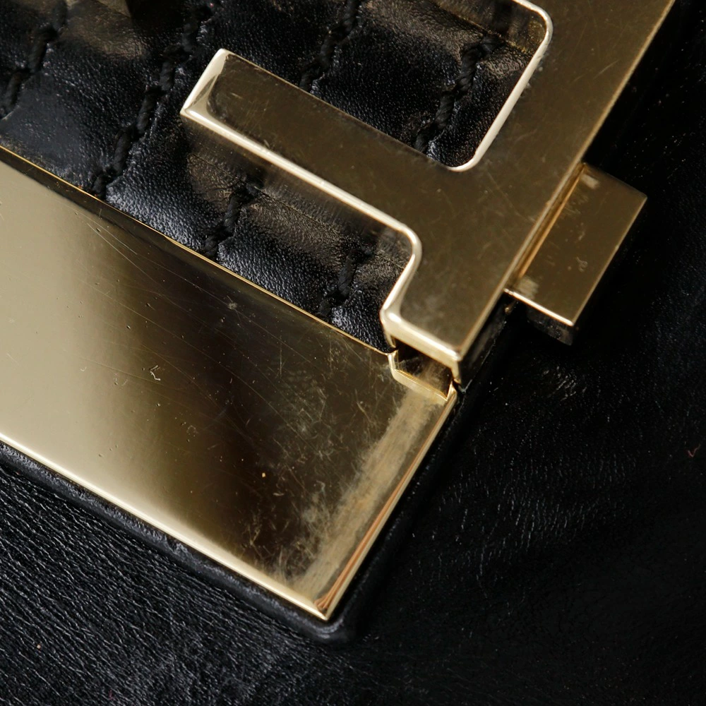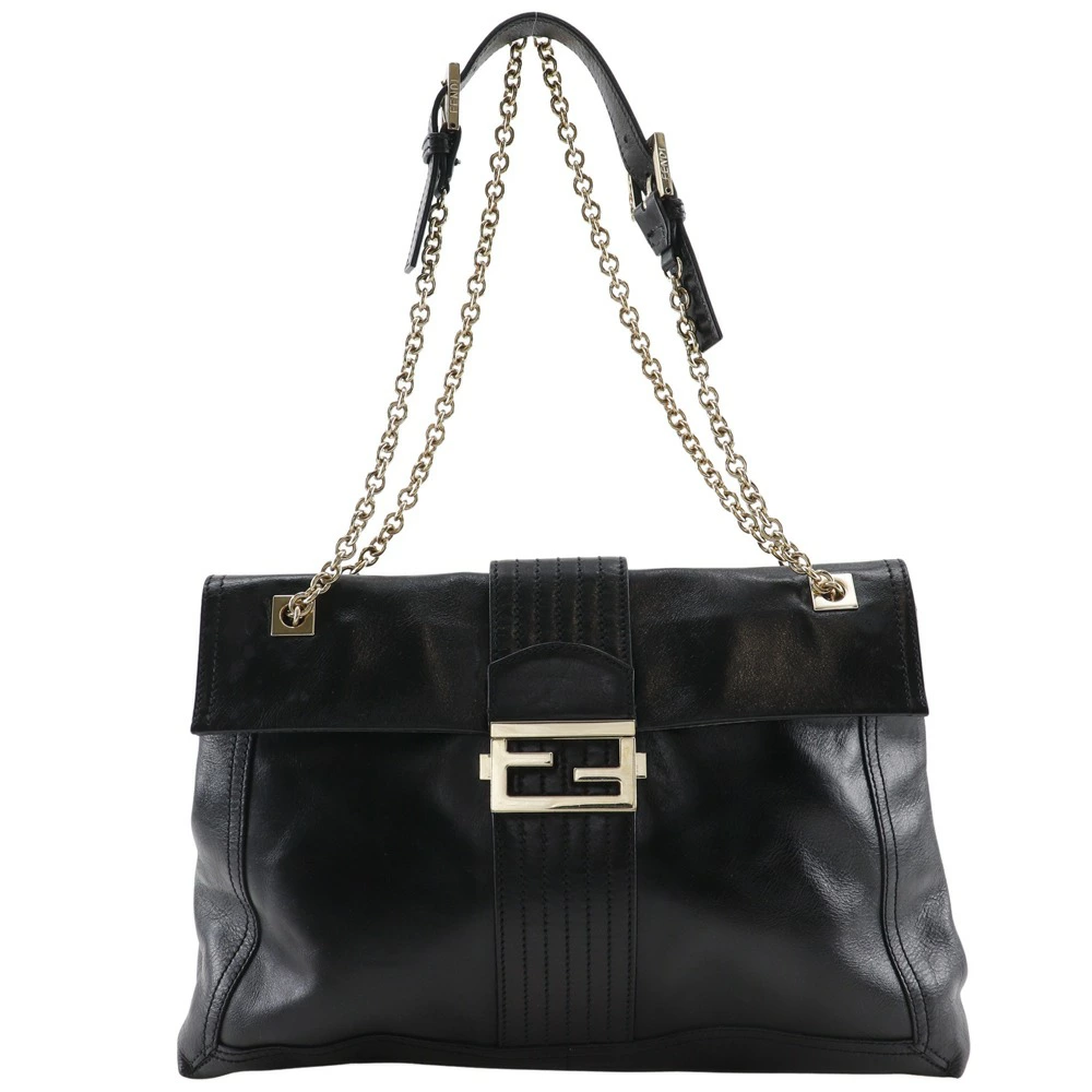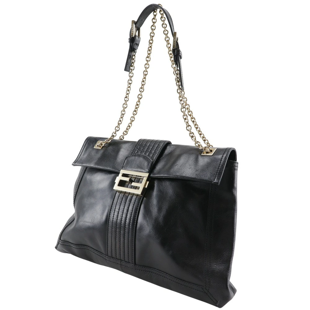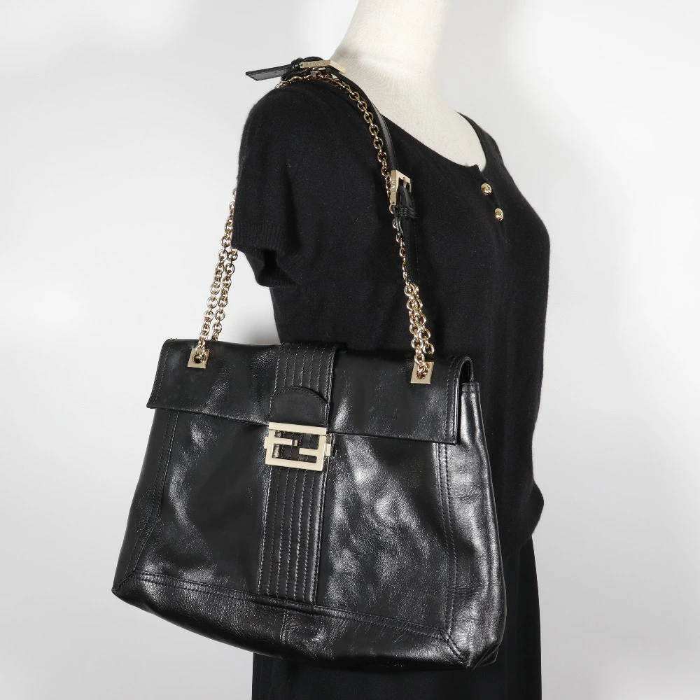 Pre-owned Fendi Chain Tote Bag, Black Leather, 2-Way Shoulder Bag, Crossbody Bag, Shoulder Bag, or Handbag Bag. This 2-Way Flap Chain Tote is perfect for women.