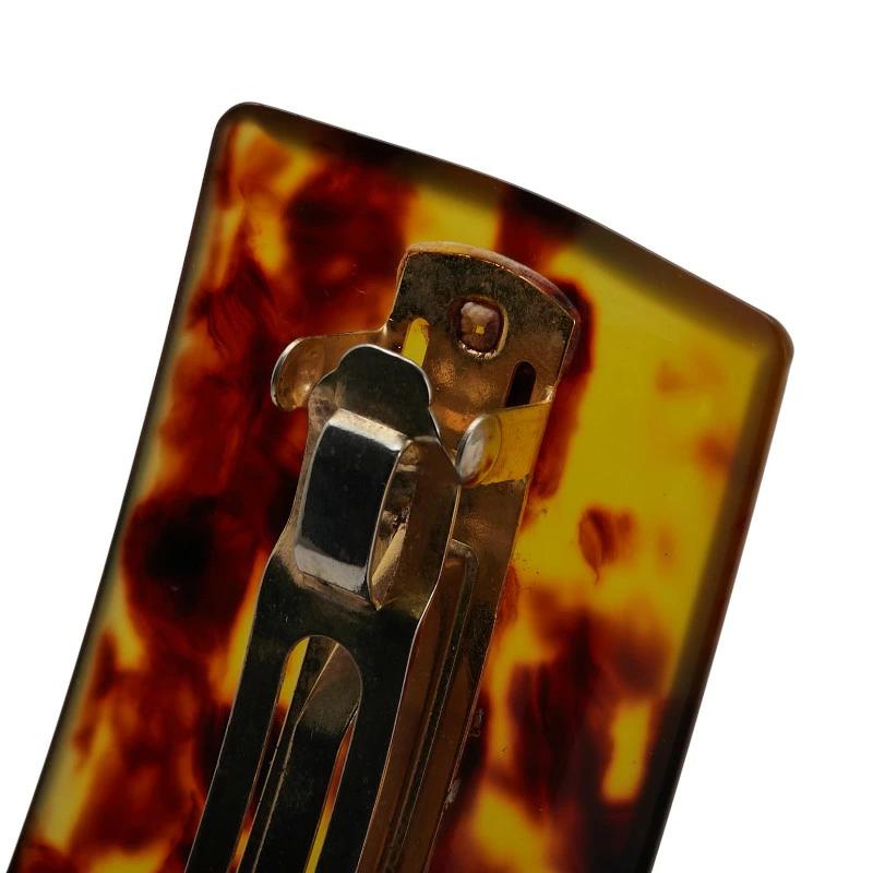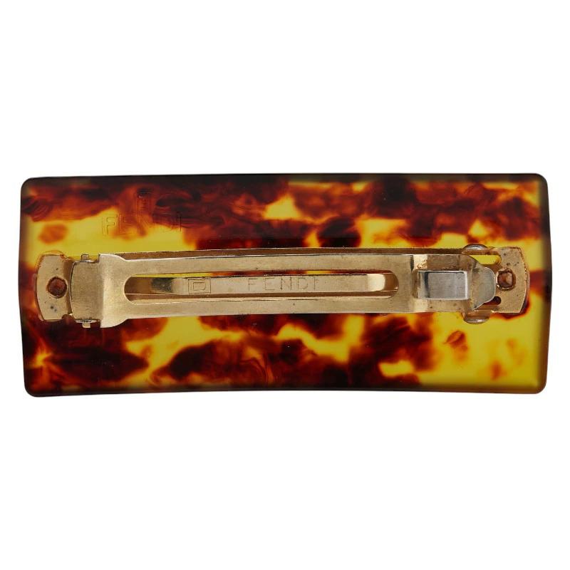 Pre-owned Fendi FF logo barrette hair clip in brown and gold-plated plastic for women.
