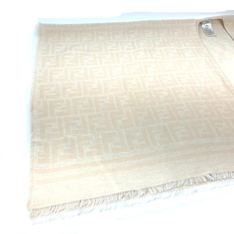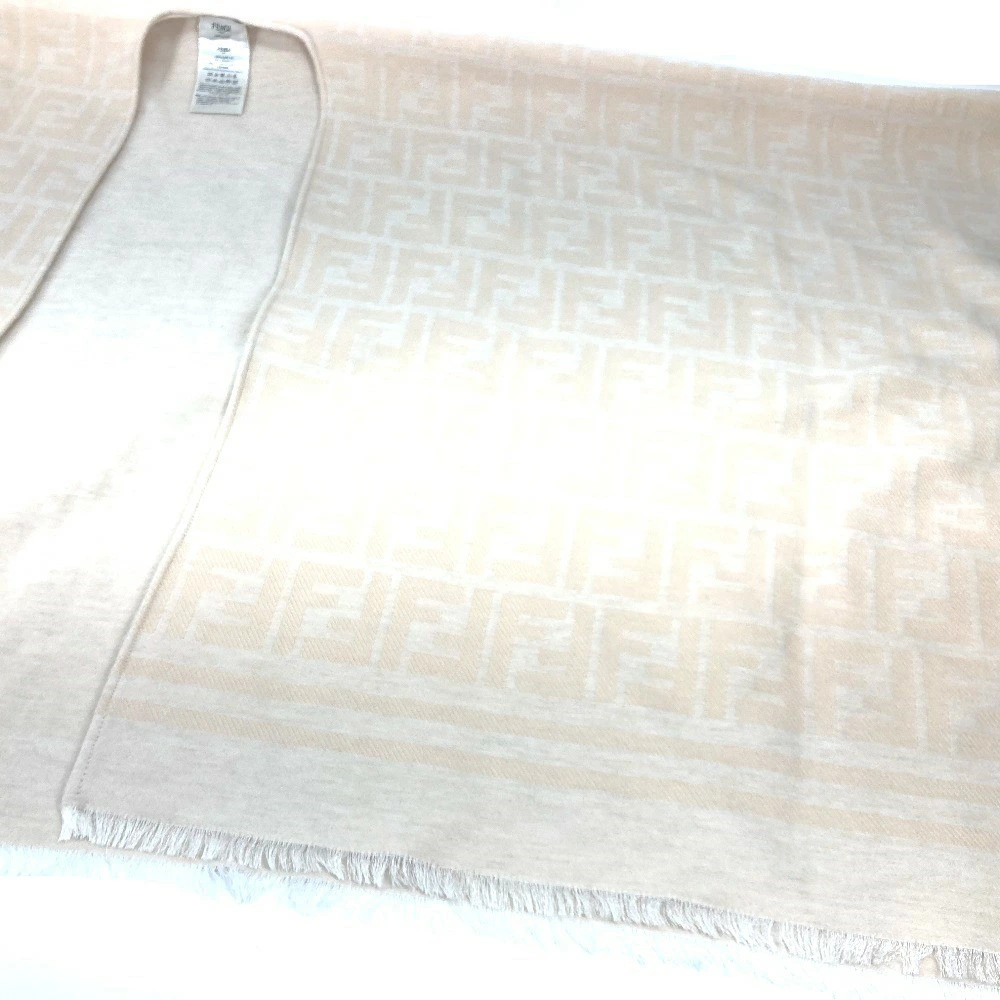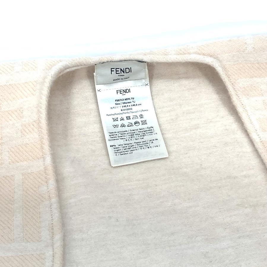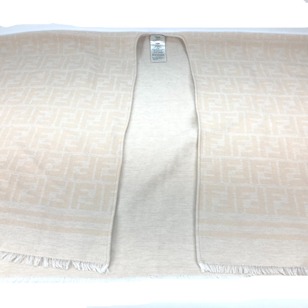 Pre-owned FENDI FXX713 Zucca Fringe Poncho in Wool and Silk, Beige.
