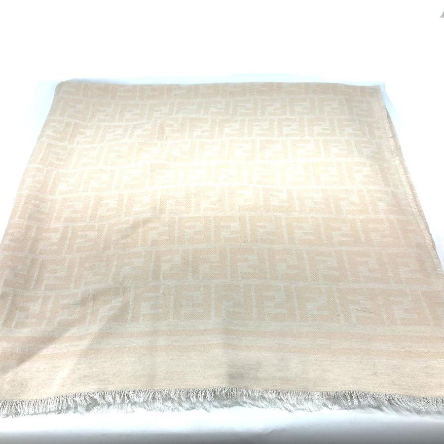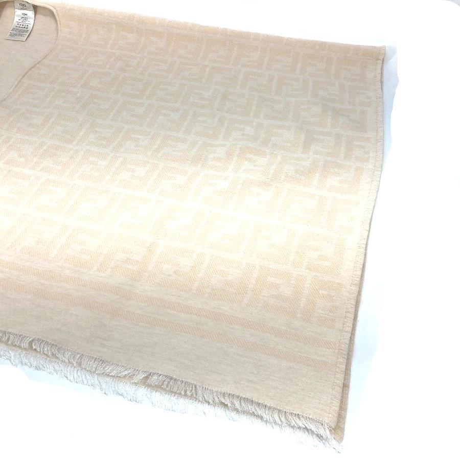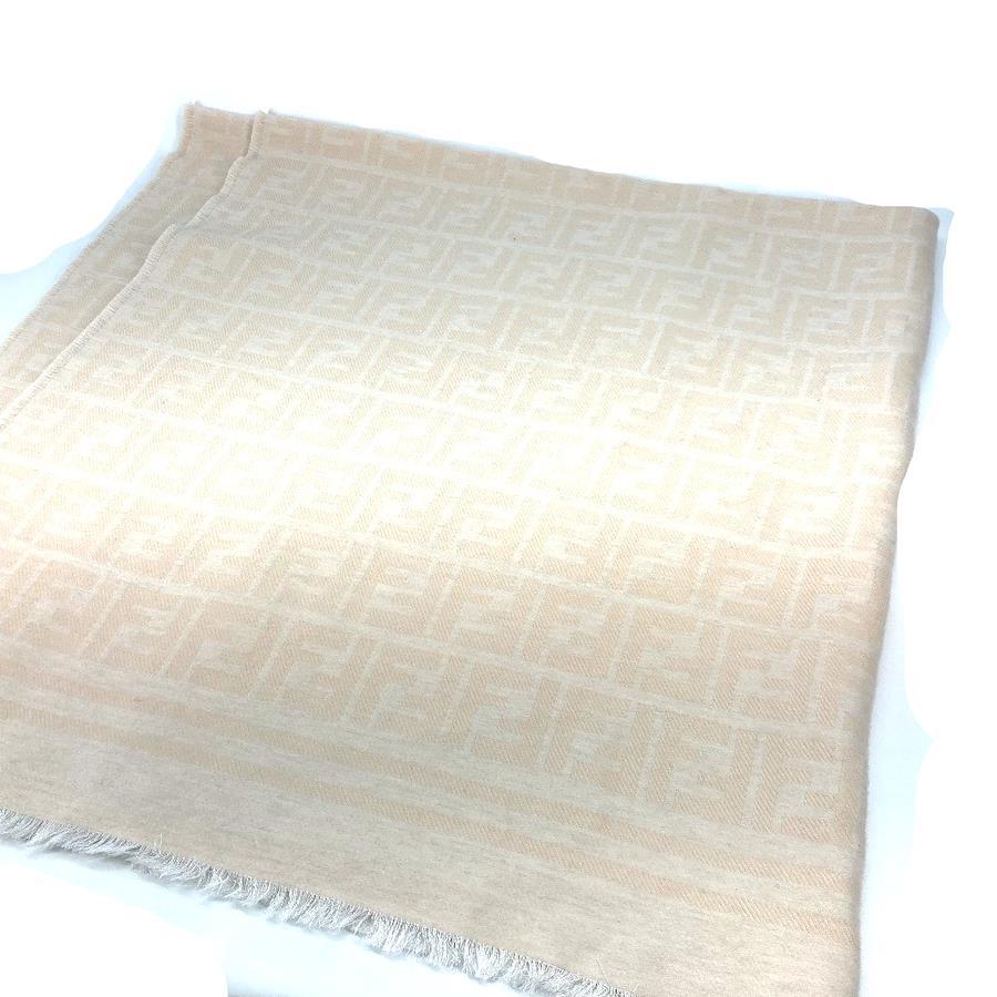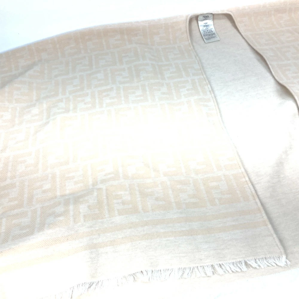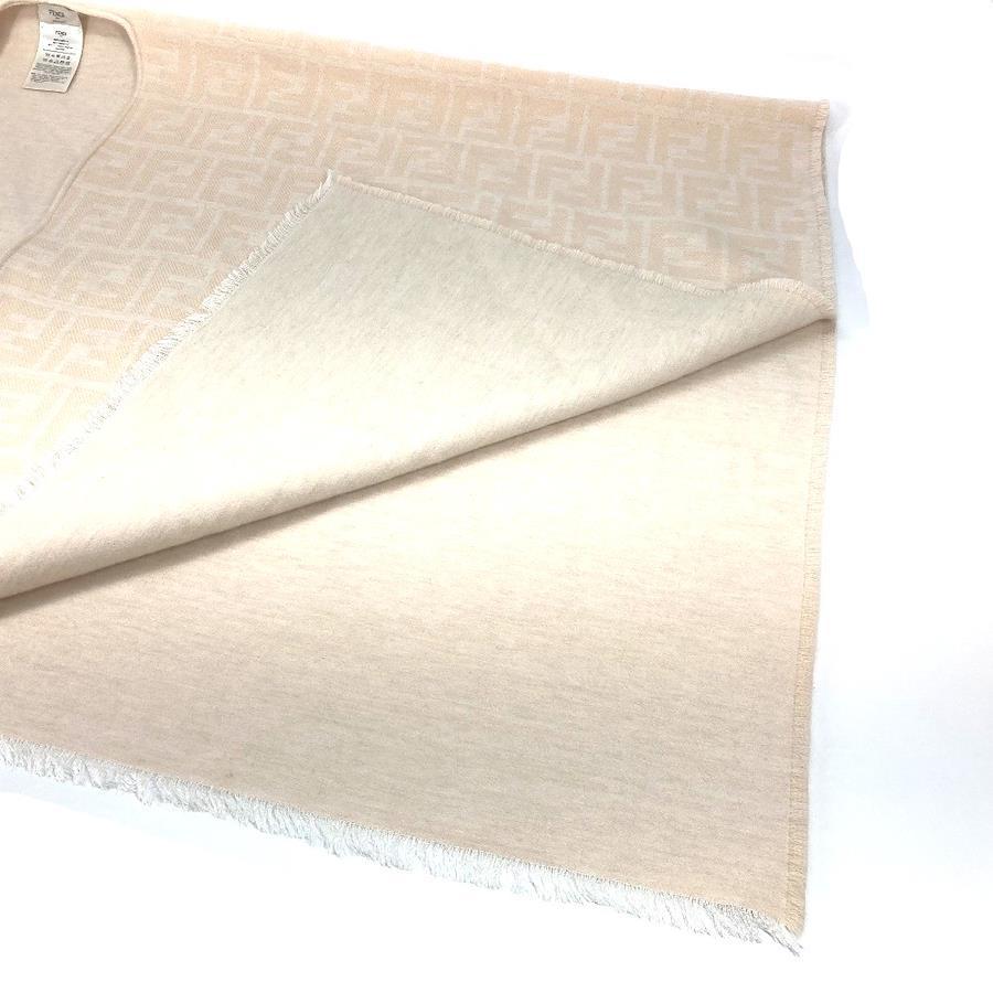 Pre-owned FENDI FXX713 Zucca Fringe Poncho in Wool and Silk, Beige.