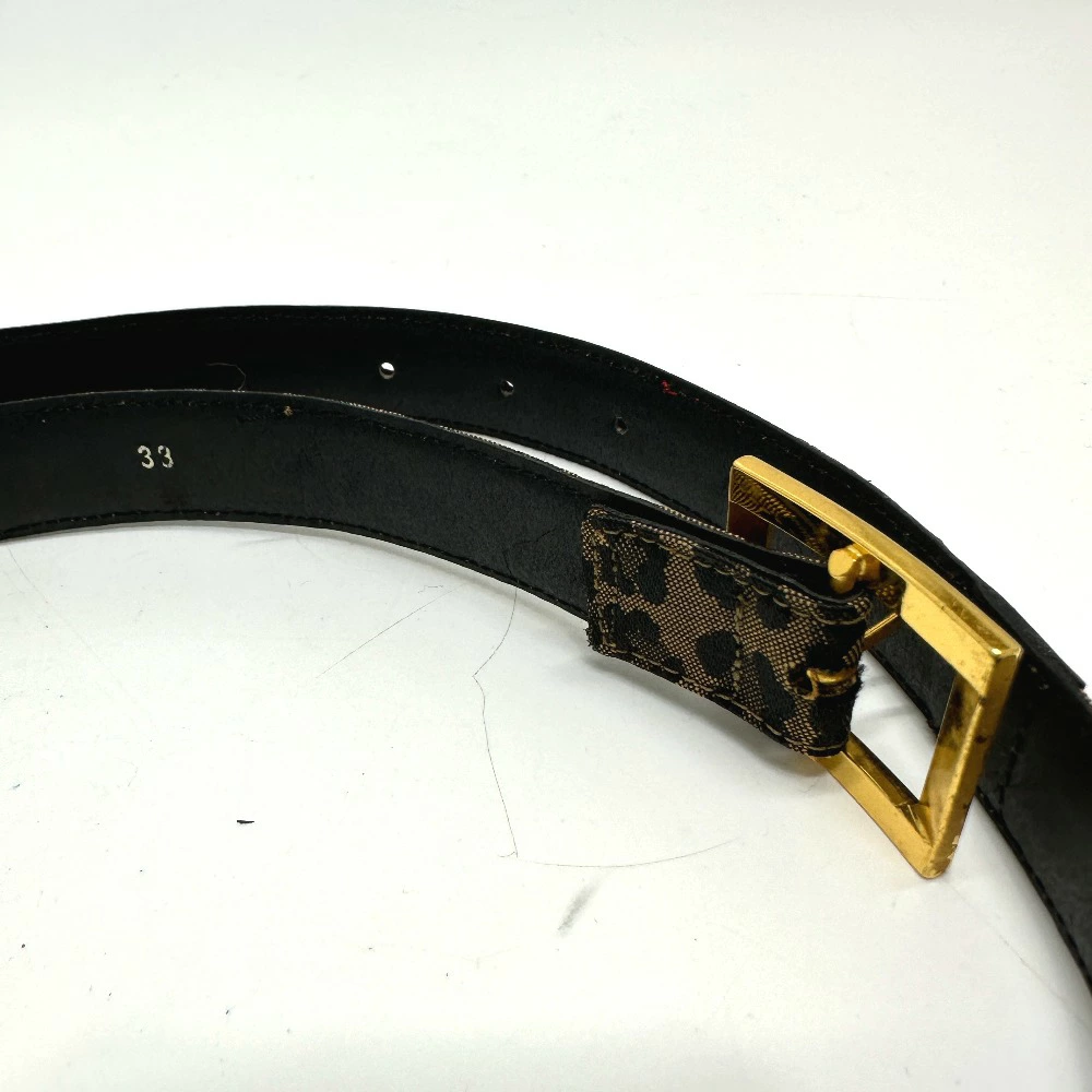 | サイズ | 全長:82cm ベルト幅:2.5cm ウエスト:67cm ~ 73cm 穴の数:5 穴の間隔:2.1cm 表記サイズ:33 実寸サイズには多少の誤差がある場合があります。 |