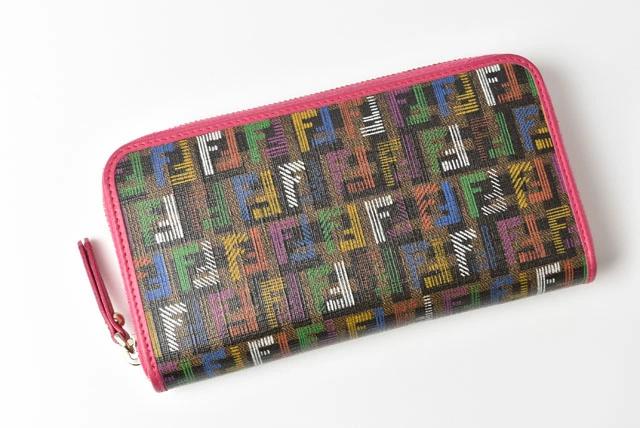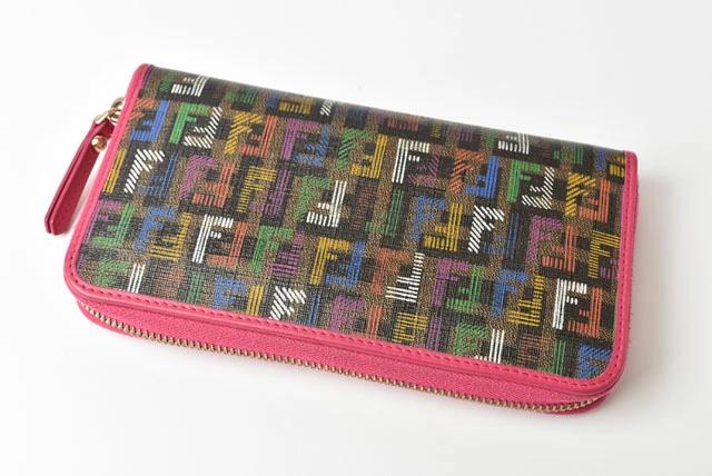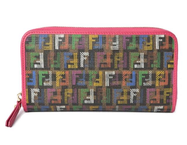 FENDI 長財布/ラウンドファスナー PVC ズッカ柄 FFロゴ/マルチカラー/ピンク 8M0299