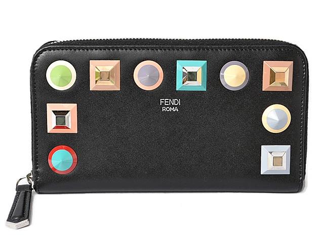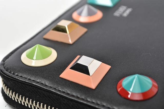 FENDI 長財布/ラウンドファスナー レインボー レザー ブラック マルチカラー スタッズ 8M0299