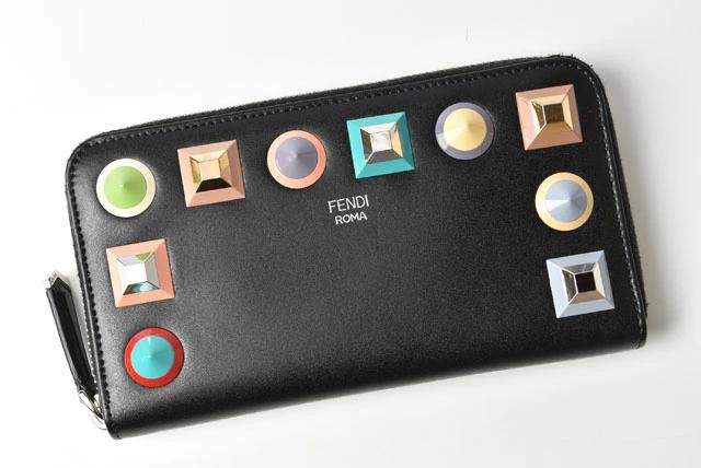 FENDI/フェンディより、ファスナー式長財布。大きくカラフルなスタッズがモチーフ。レザー素材です。間仕切りポケットもあり、収納力があります。