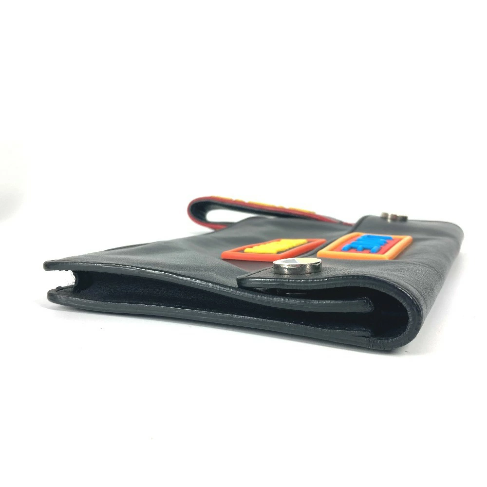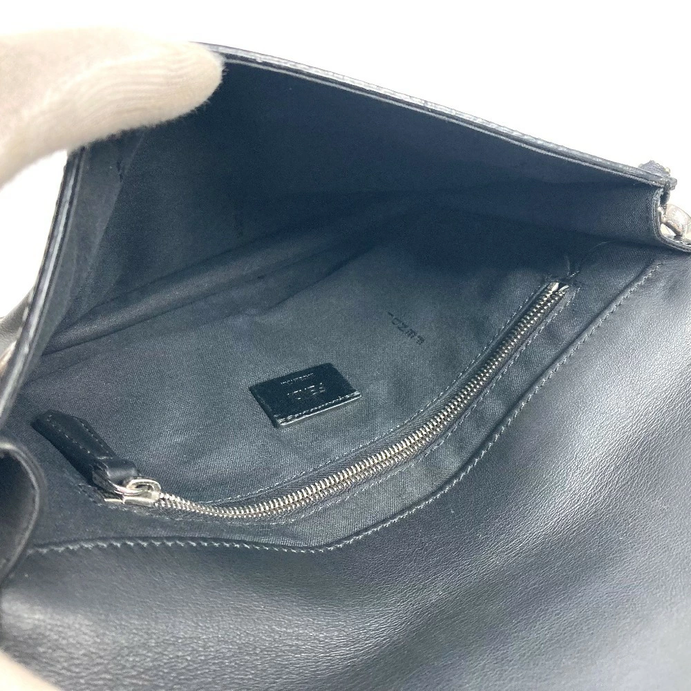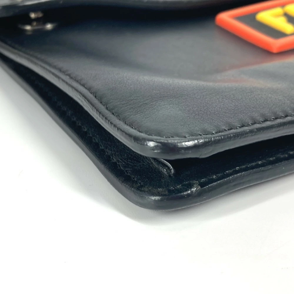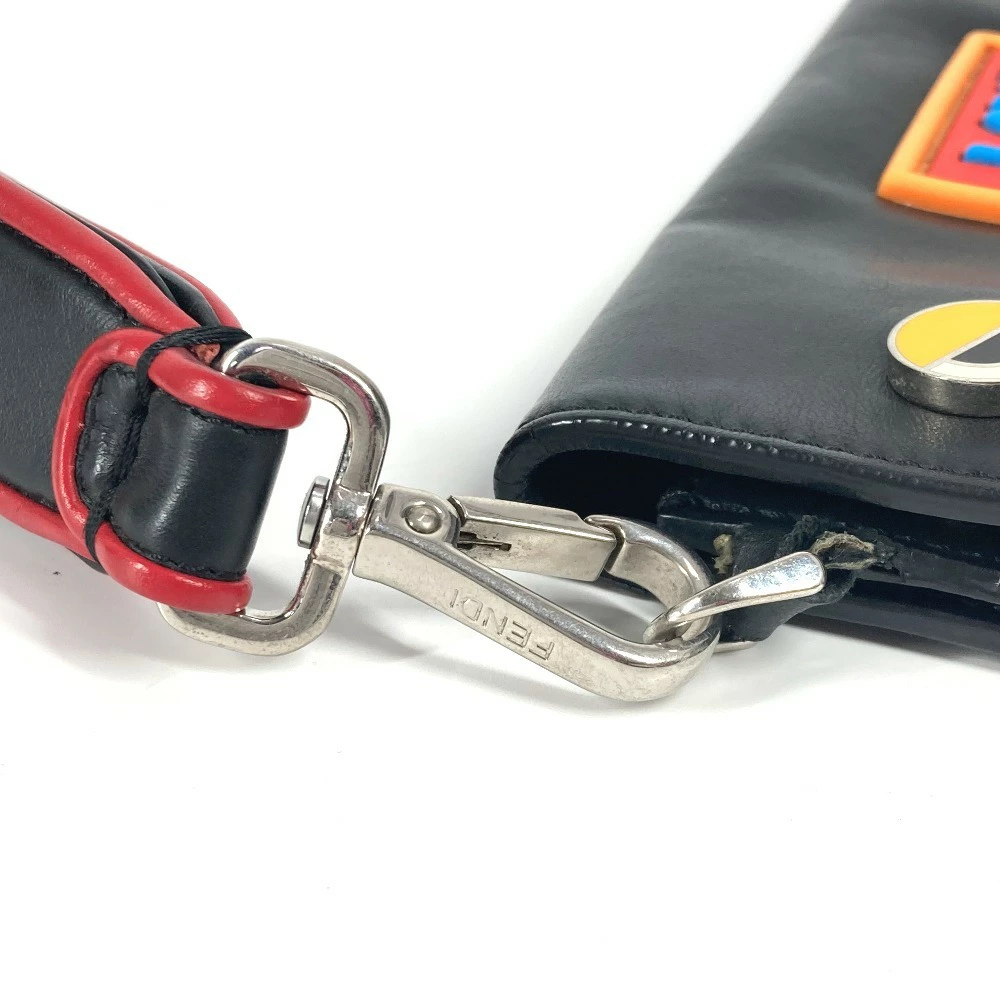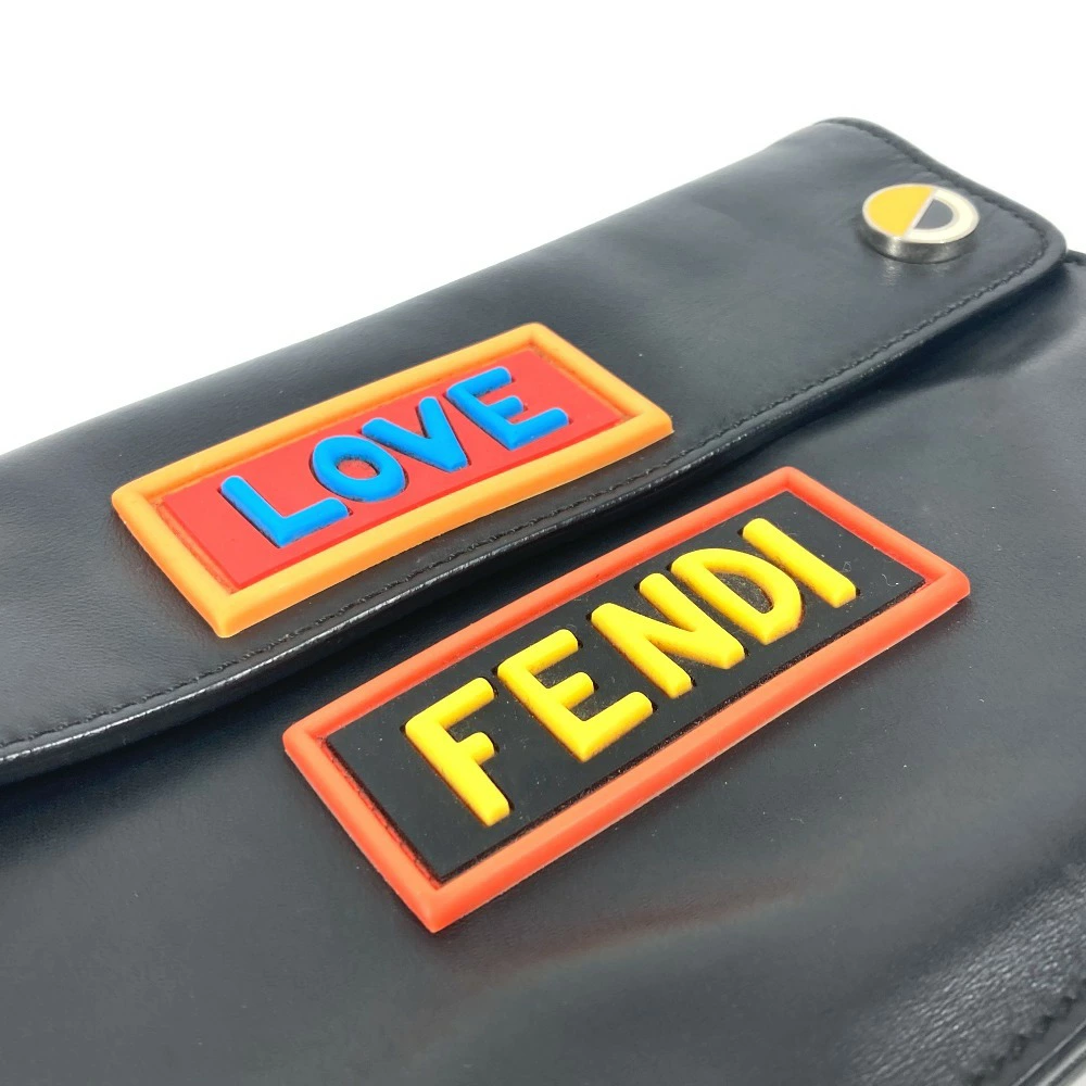 Pre-owned FENDI LOVE logo pouch bag with strap, flap clutch bag, leather, unisex, black.