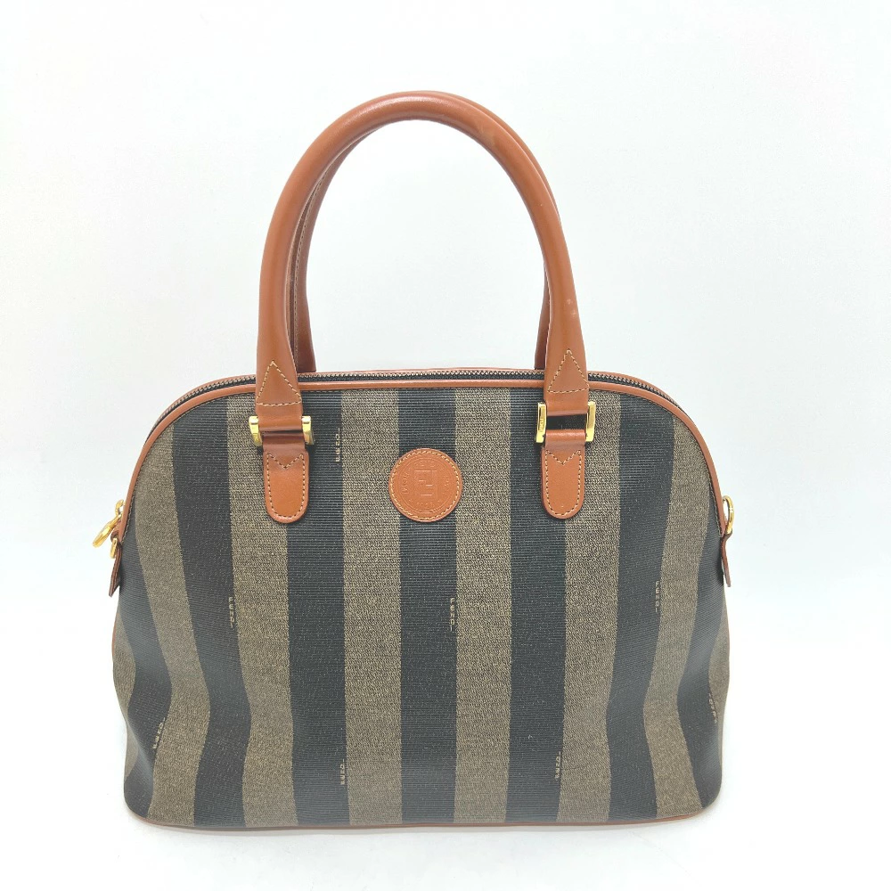 | 商品説明 | レトロなストライプ「ペカン柄」が印象的な、フェンディのボーリングバッグです。落ち着いたブラウンとブラックの配色が、ヴィンテージらしい上品さを引き立てます。 |