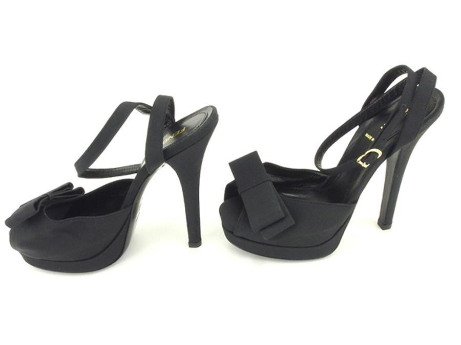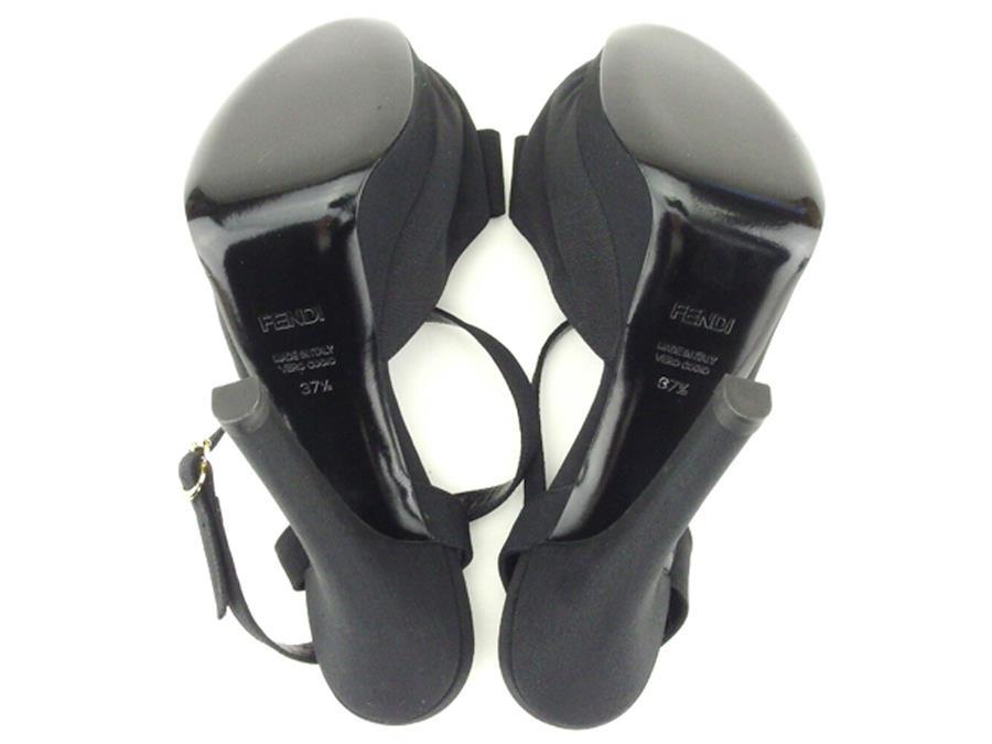 Pre-owned Fendi sandals with ribbon motif, #37 half ankle strap, black and gold. Women's.