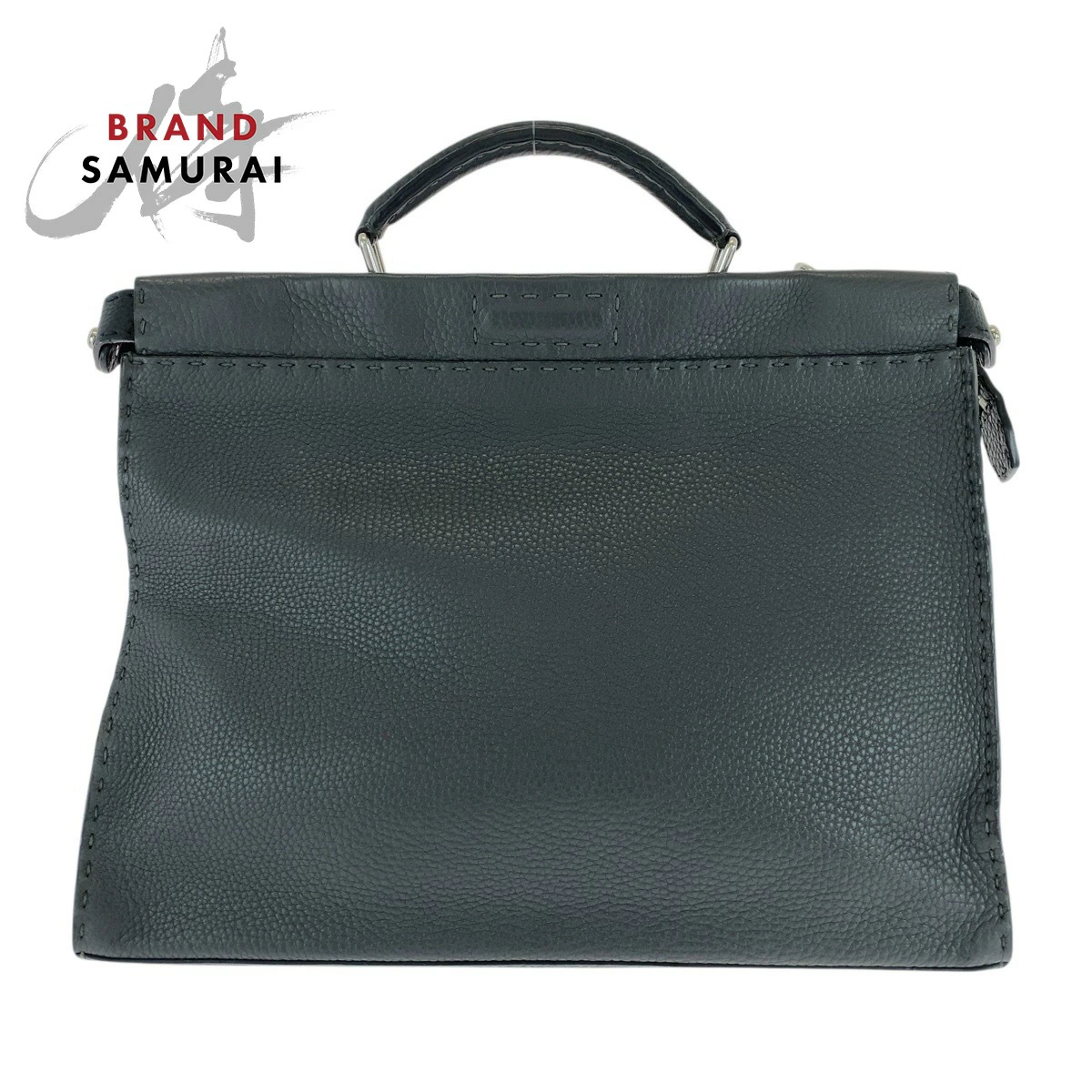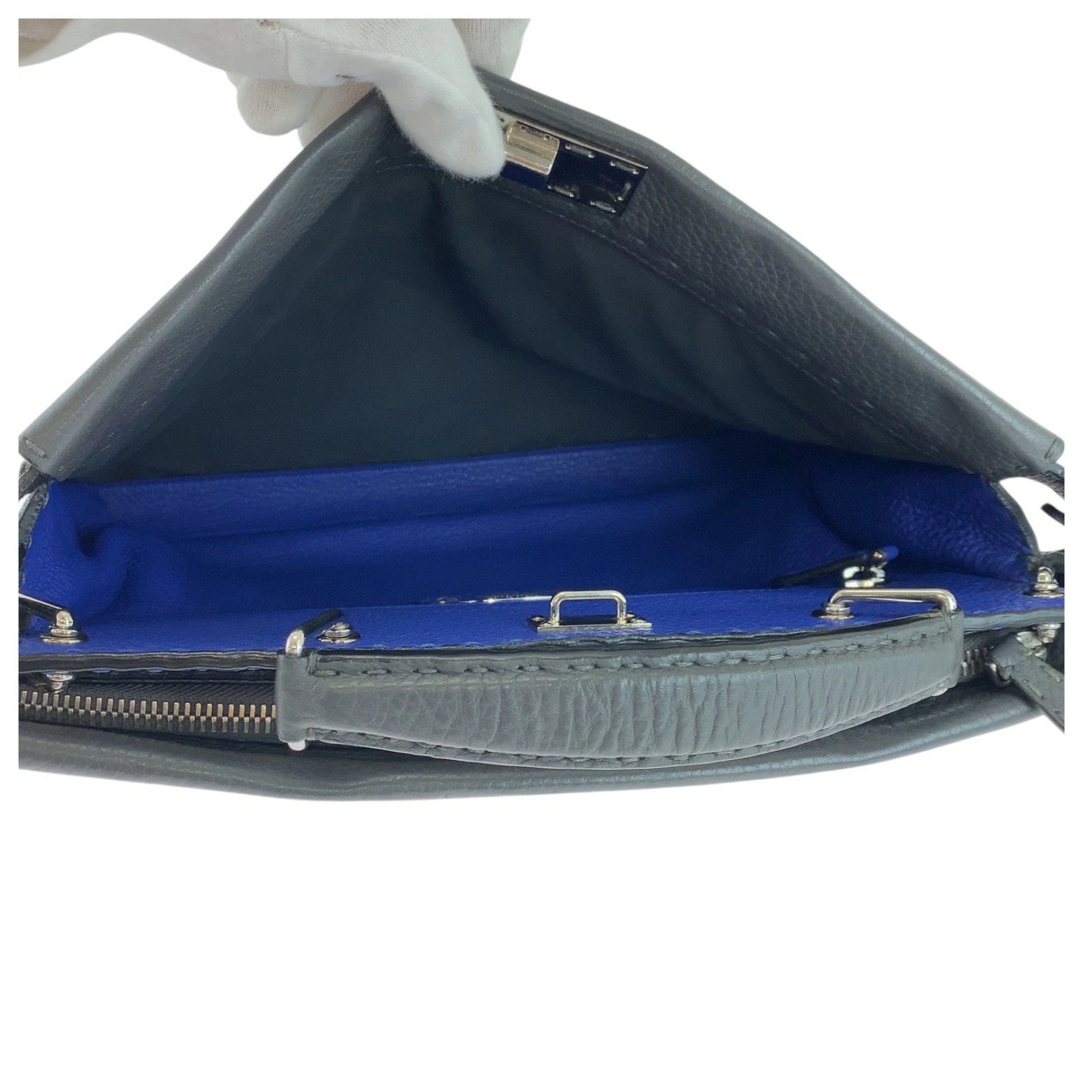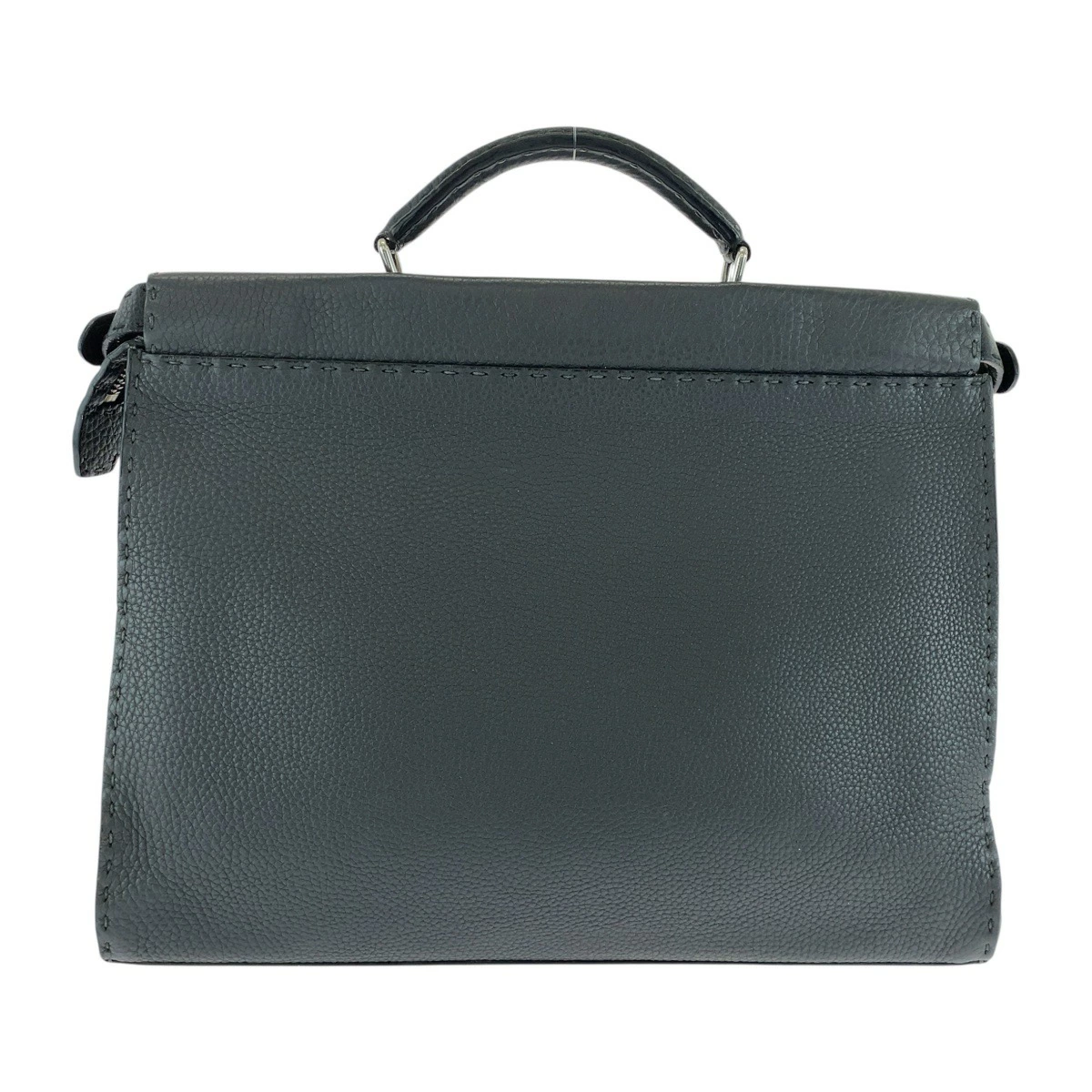 Pre-owned FENDI Selleria Peekaboo Men's Business Briefcase 503385, Gray Leather with Silver Hardware, 7VA406