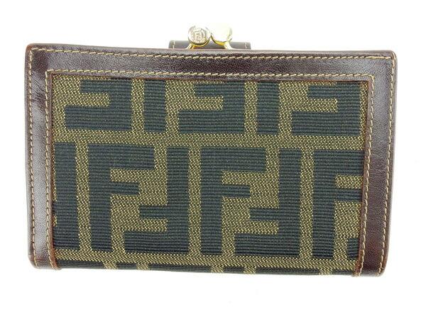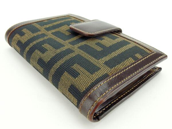 Pre-owned Fendi Zucca bifold wallet in brown, khaki, and black for women