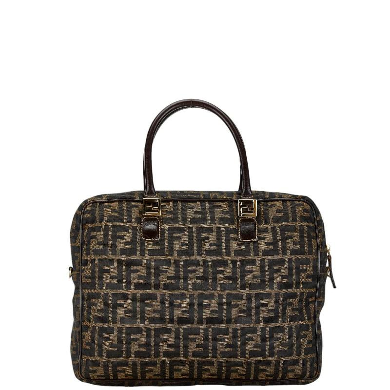 Pre-owned Fendi Zucca business bag/shoulder bag in brown canvas and leather. Women's.