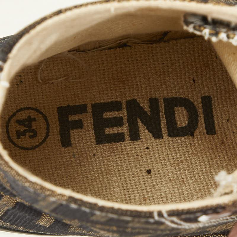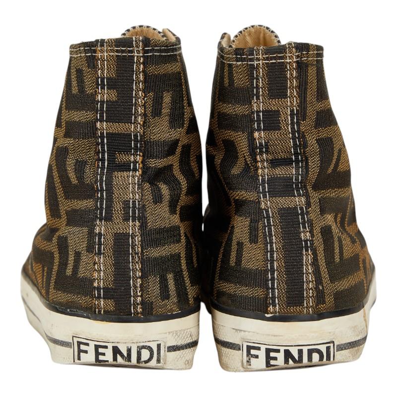 Pre-owned Fendi Zucca high-top sneakers, size 34, beige and brown canvas, women's.