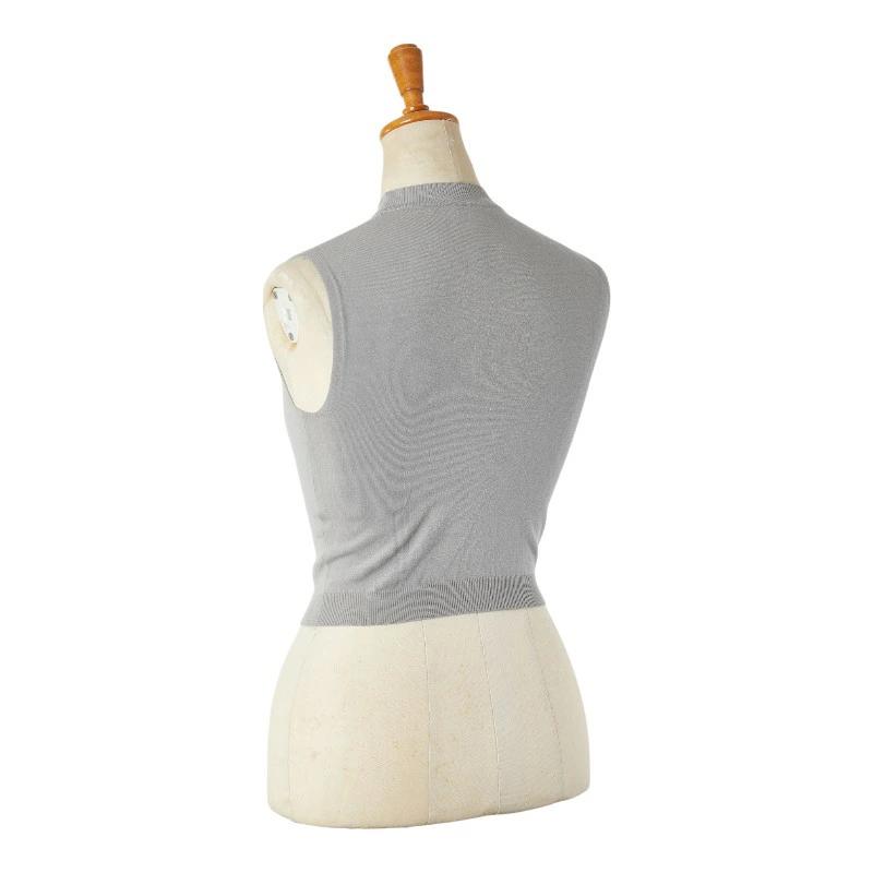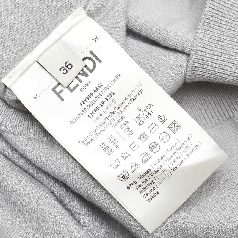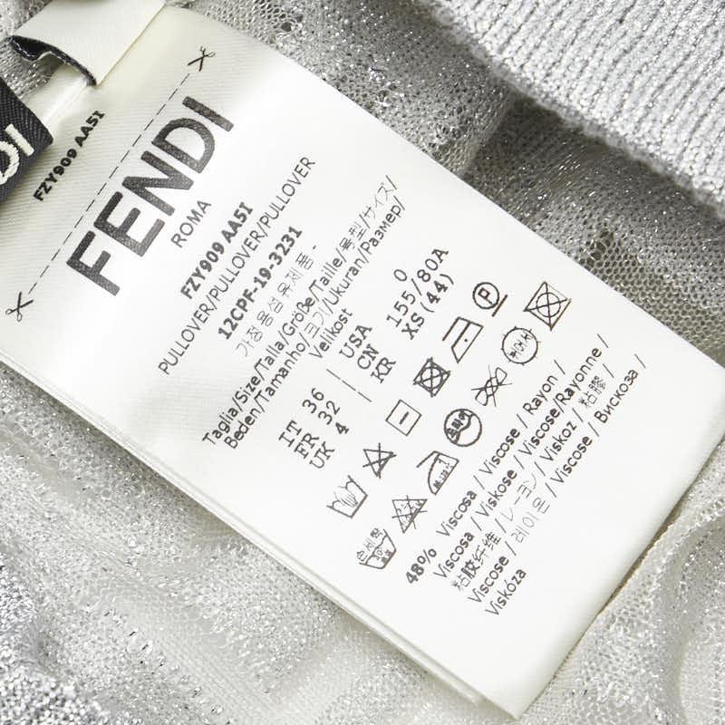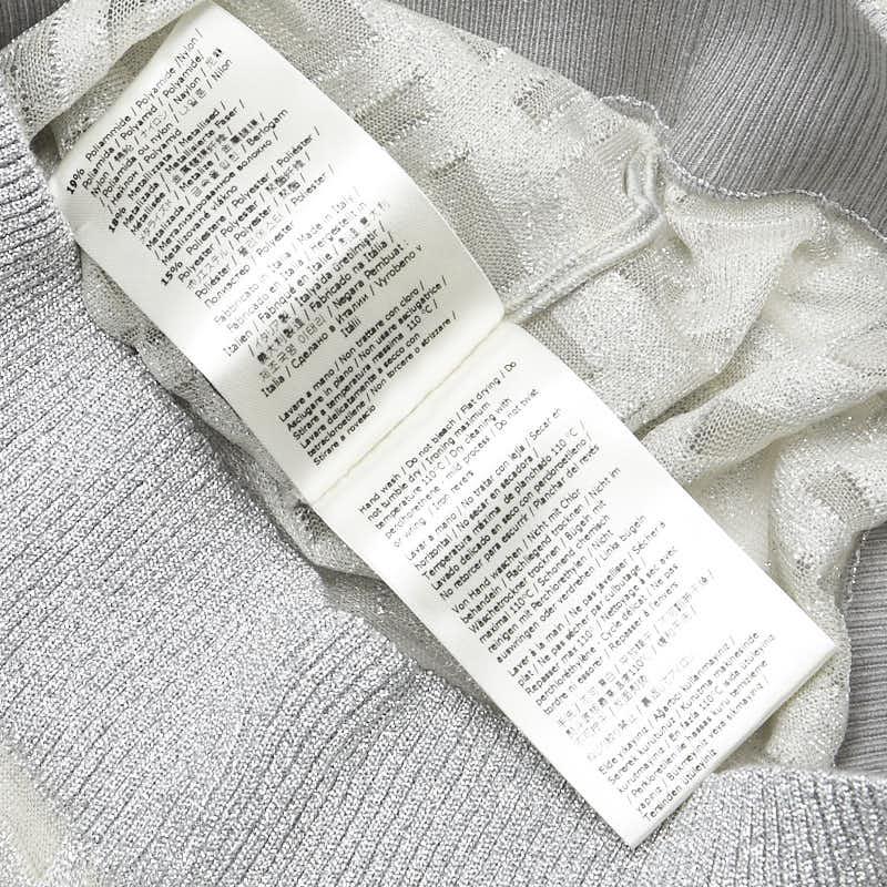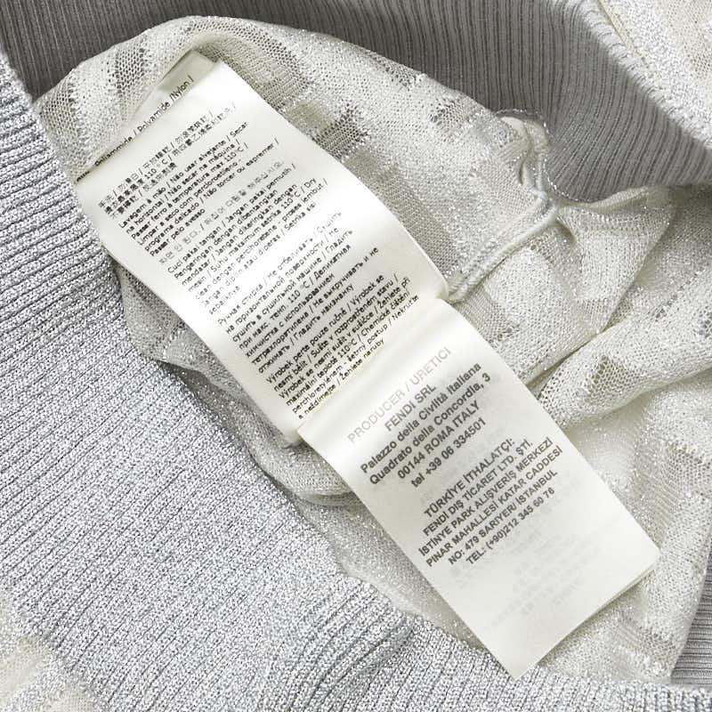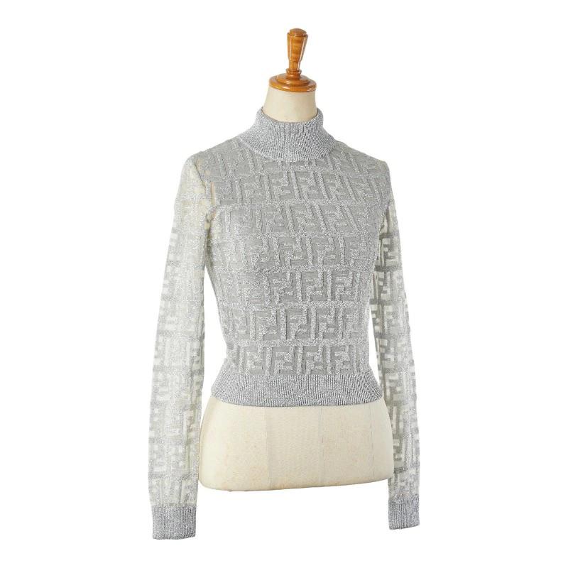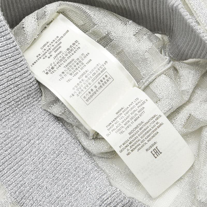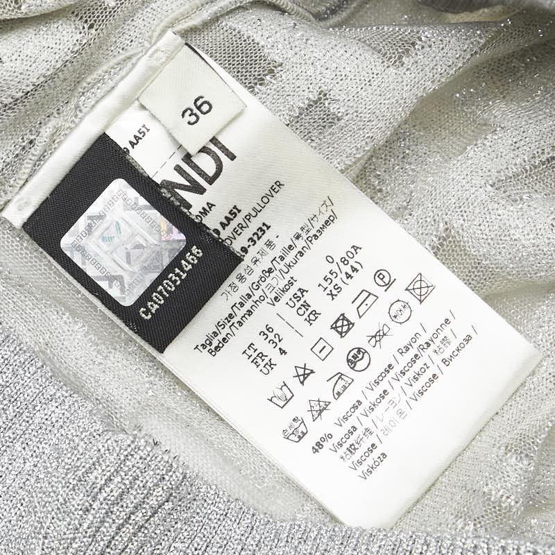 Pre-owned Fendi Zucca mock neck knit with sheer lining, size 36, silver and gray rayon and nylon, women's.