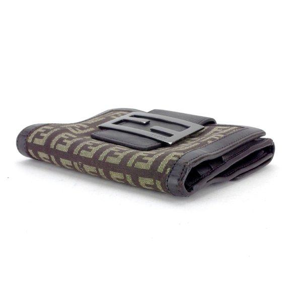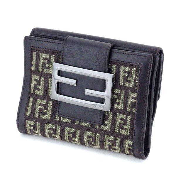 Pre-owned Fendi Zucchino FF Plate Bifold Wallet in Brown and Beige for Women