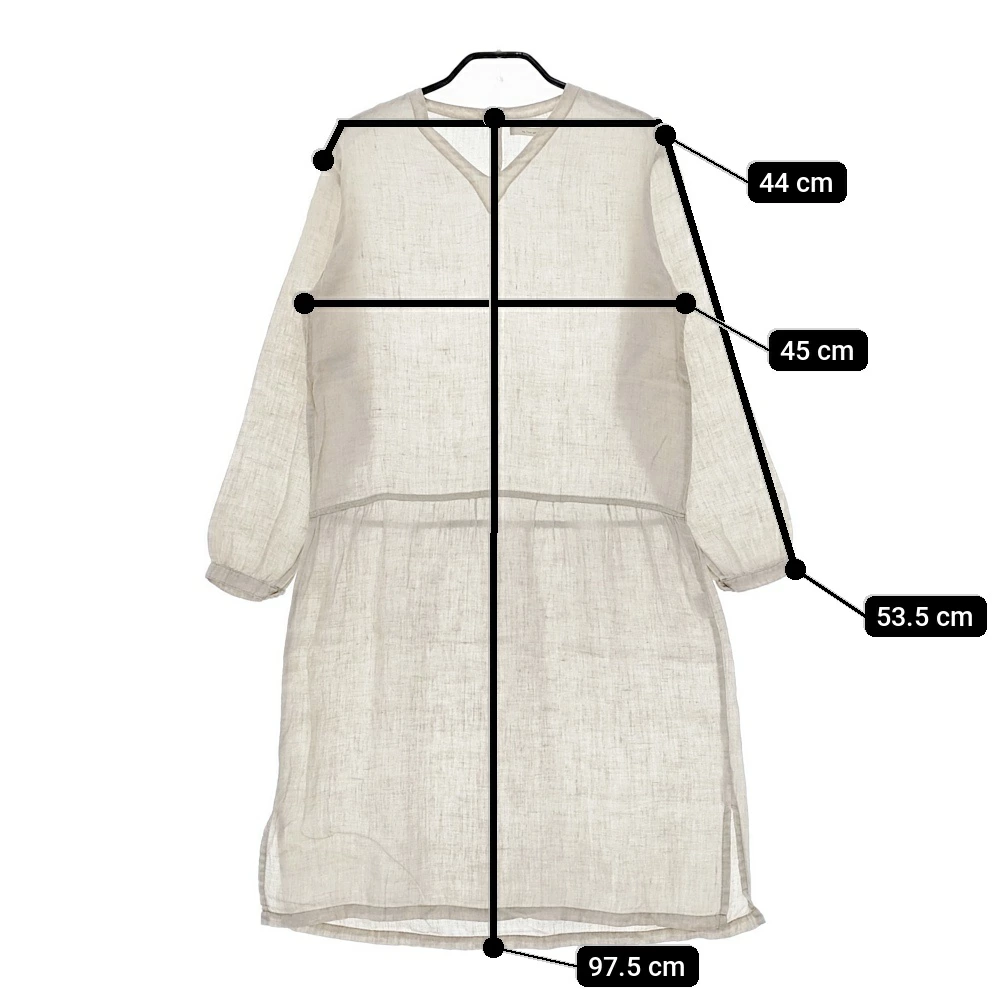 | 仕様 | ポケット:なし スリット:14cm 着脱仕様: プルオーバー 透け感: ややあり 裏地: なし |