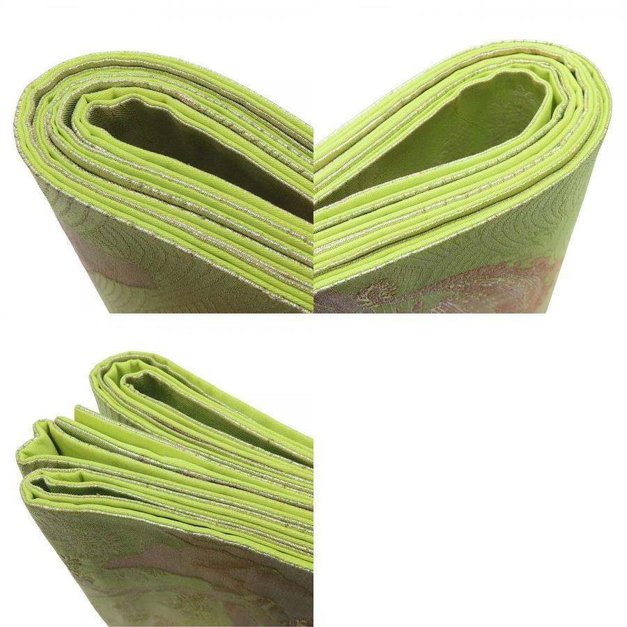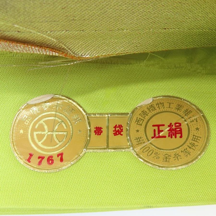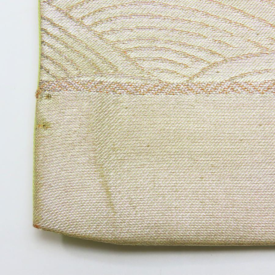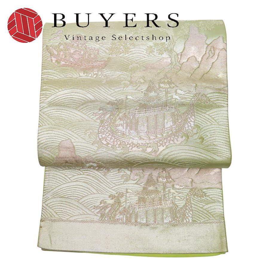 | 品名 | 【中古】 袋帯 1767 西陣織 正絹(金銀糸除く) シルバー系 ライトグリーン 六通柄 御所車 未仕立て レディース 女性 |