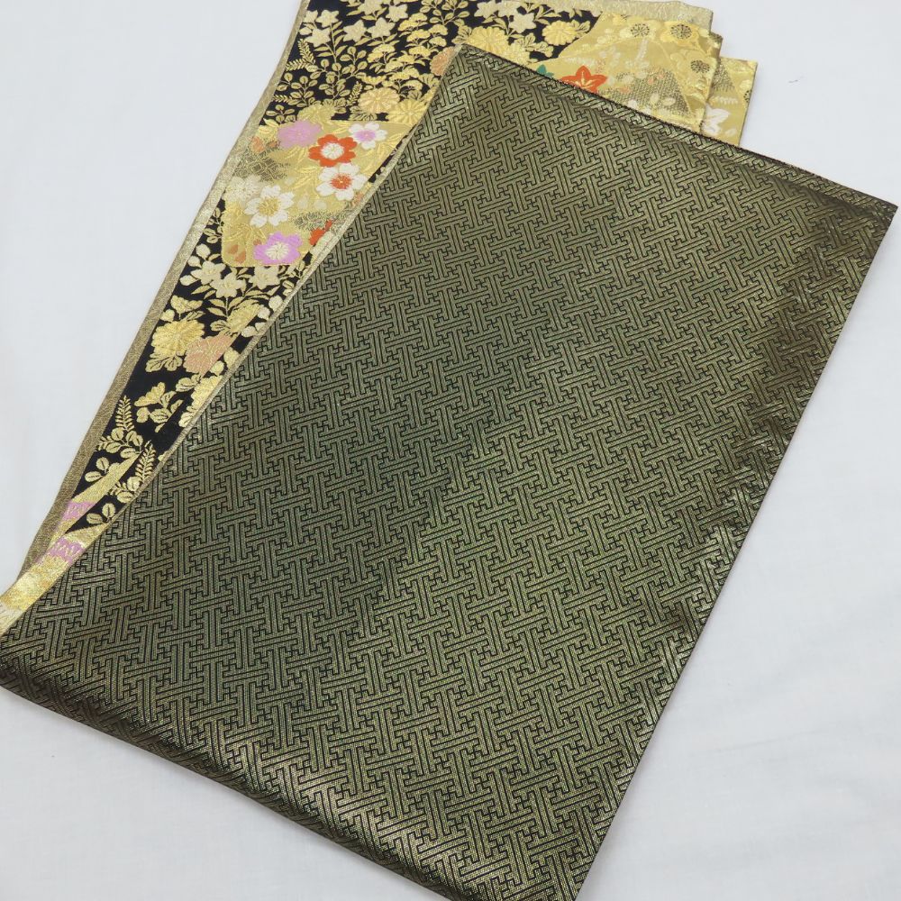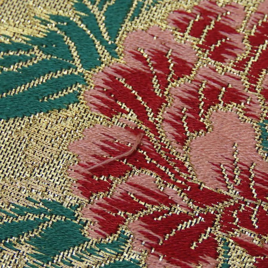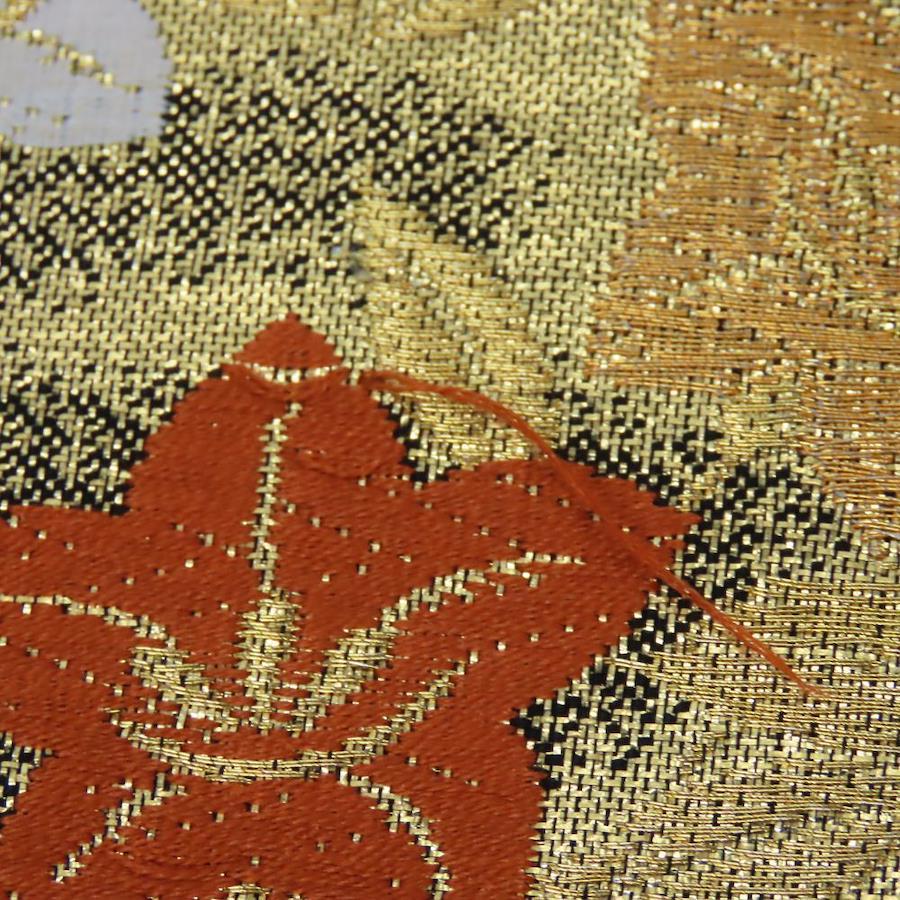 | サイズ | サイズ 全長:約 433cm 幅:約 31cm 帯の柄1:花々 帯の柄2:吉祥文様 帯の柄3:紗綾形 枠 重量:約730g |