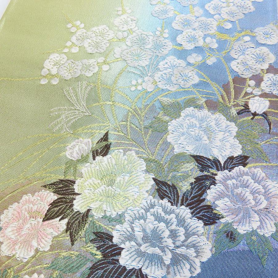 | 品名 | 【中古】 袋帯 正絹(金銀糸除く) ブルー ゴールド ピンク フォーマル 花柄 レディース 女性 |