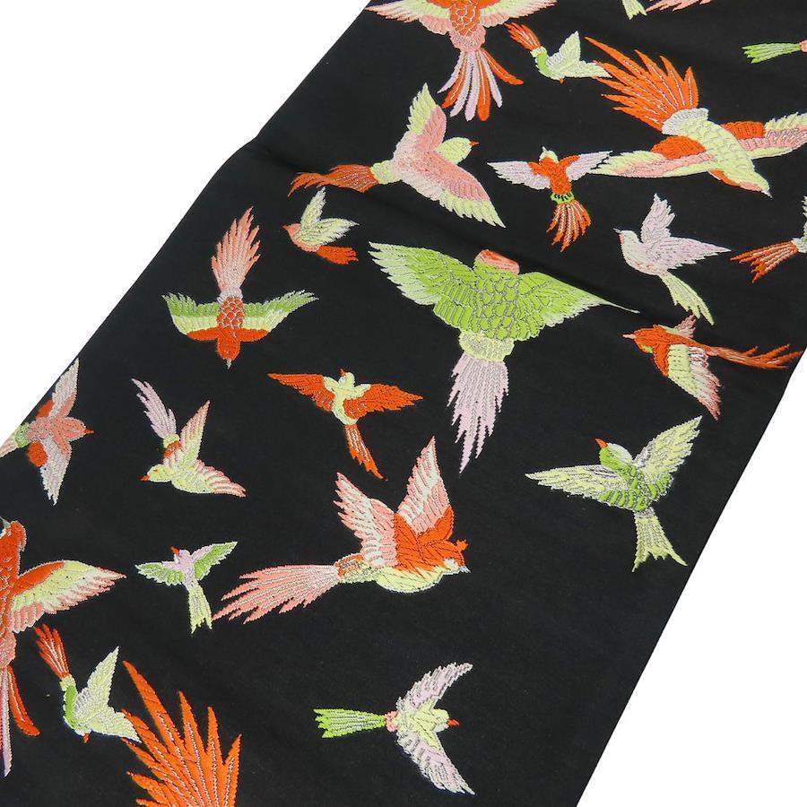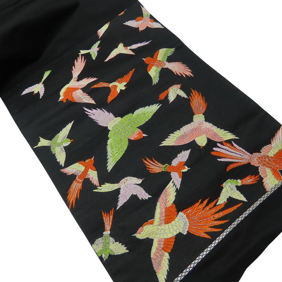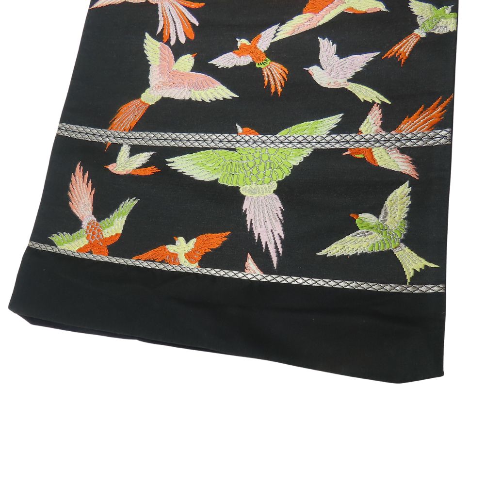 | 品名 | 【中古】 袋帯 正絹(金銀糸除く) ブラック マルチカラー 鳳凰 洒落帯 レディース 女性 |