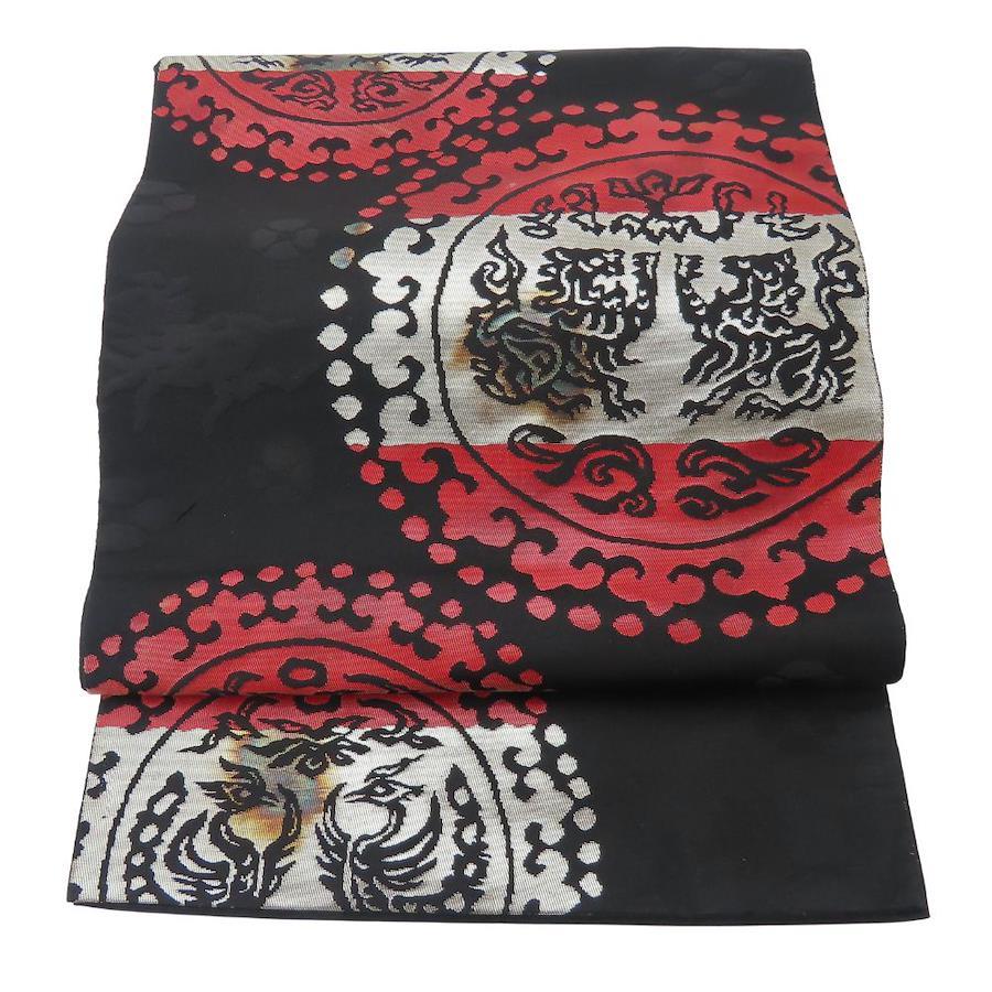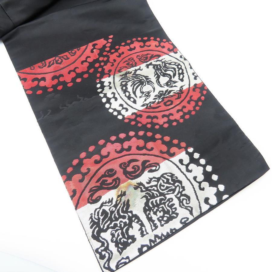 | 品名 | 【中古】 袋帯 正絹(金銀糸除く) ブラック えんじ シルバー 西陣織 こはく錦 レディース 女性 |