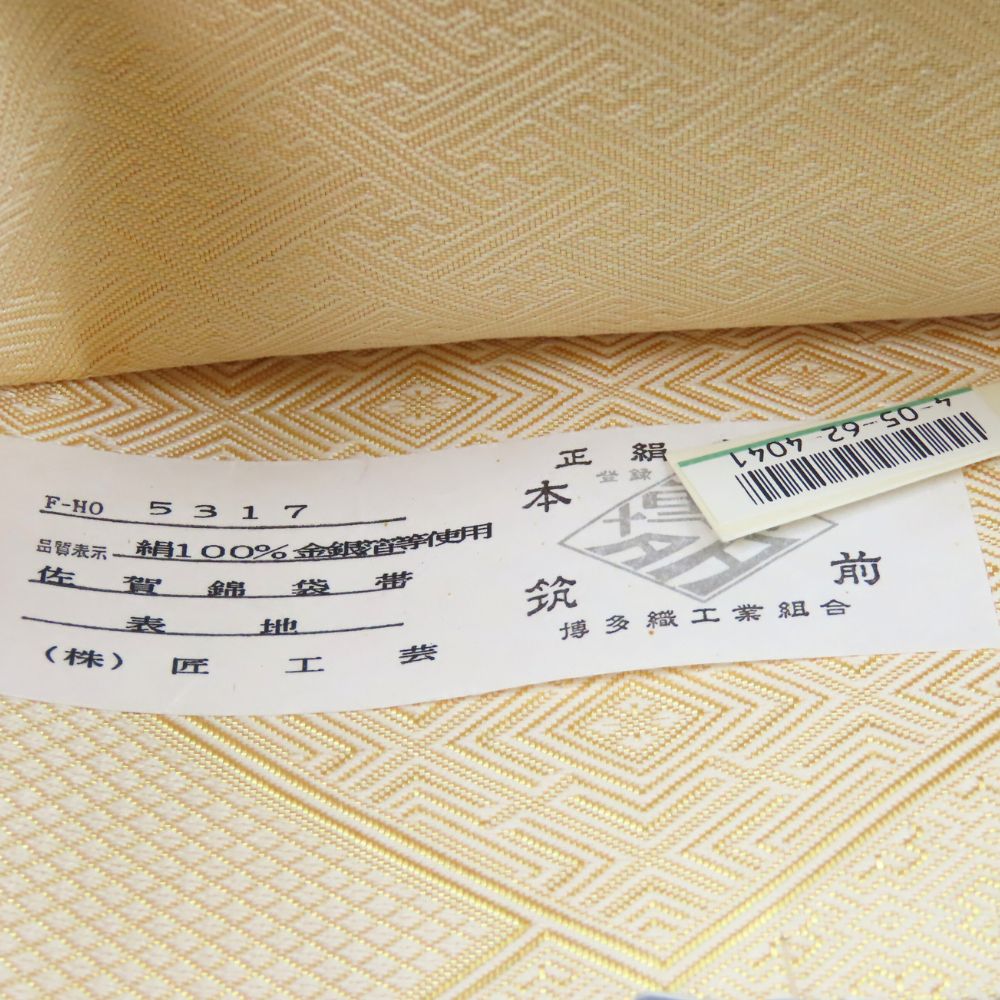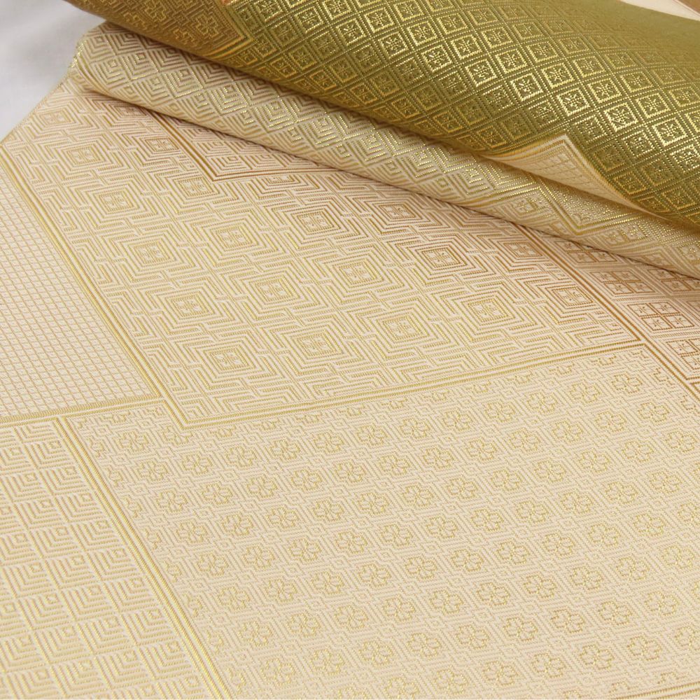| 品名 | 【中古】 袋帯 正絹(金銀糸除く) オフホワイト ベージュ ゴールド 佐賀錦 本場筑前博多織 レディース 女性 |
