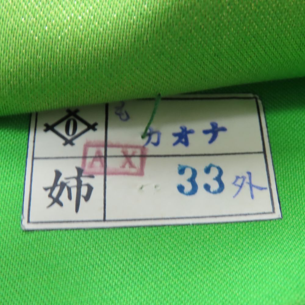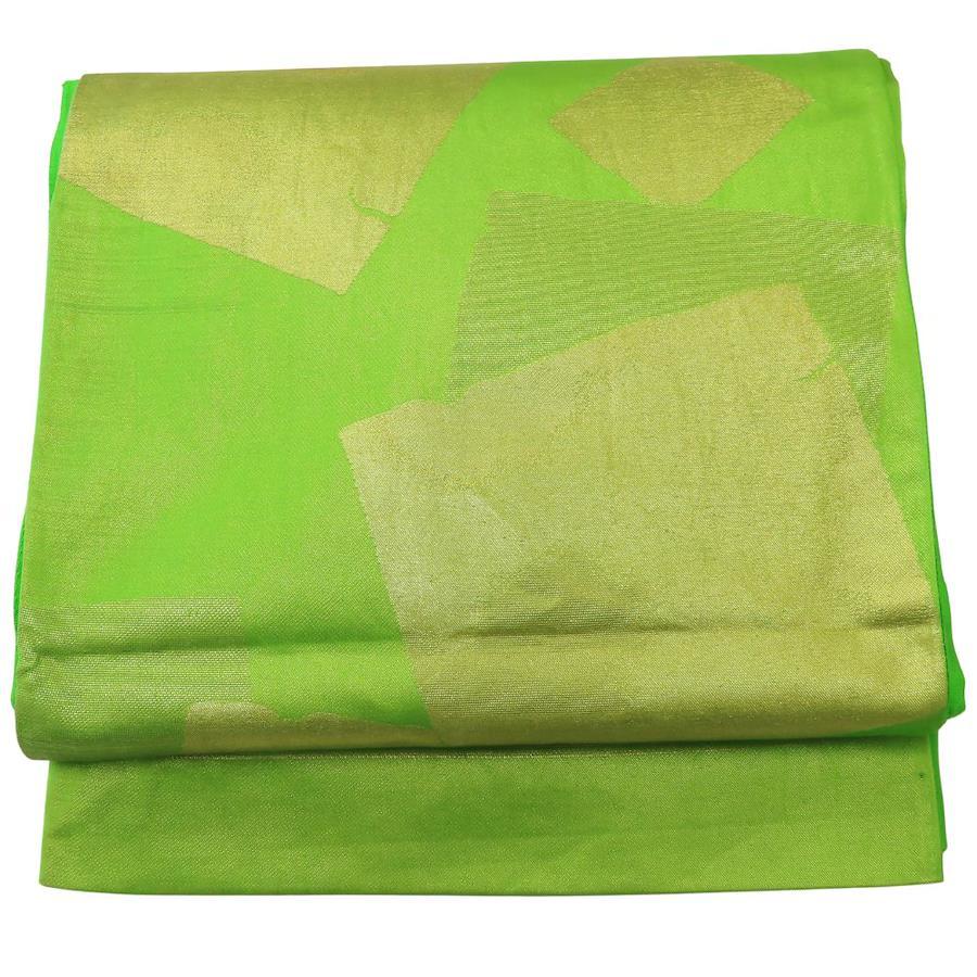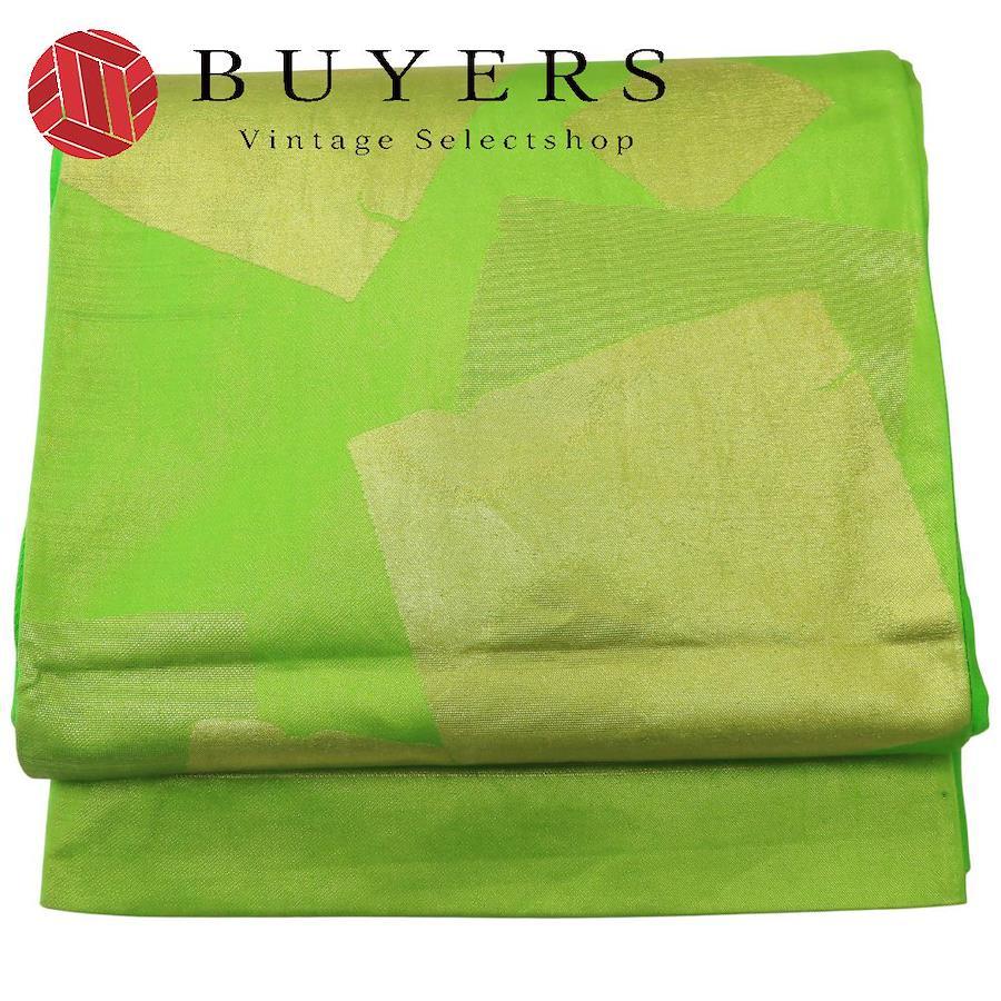 | 品名 | 【中古】 袋帯 正絹(金銀糸除く) 黄緑 ライムグリーン 金 六通柄 幾何学模様 レディース 女性 |