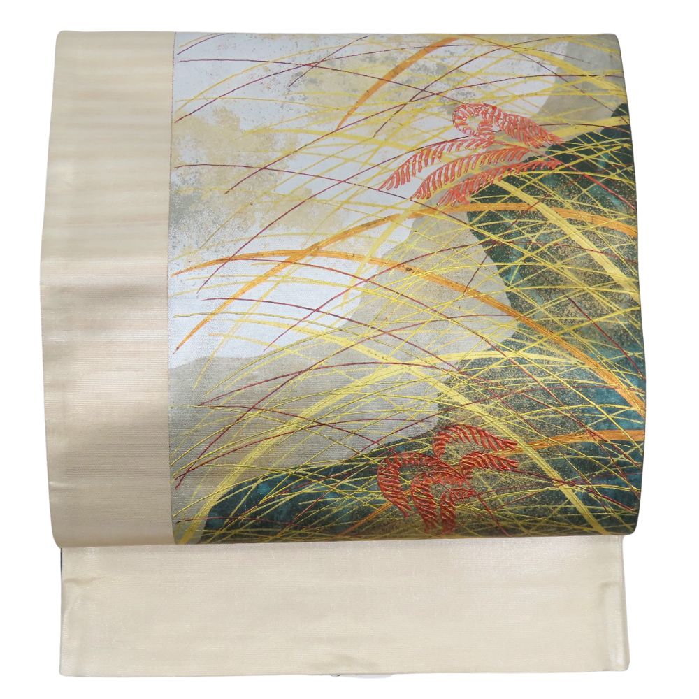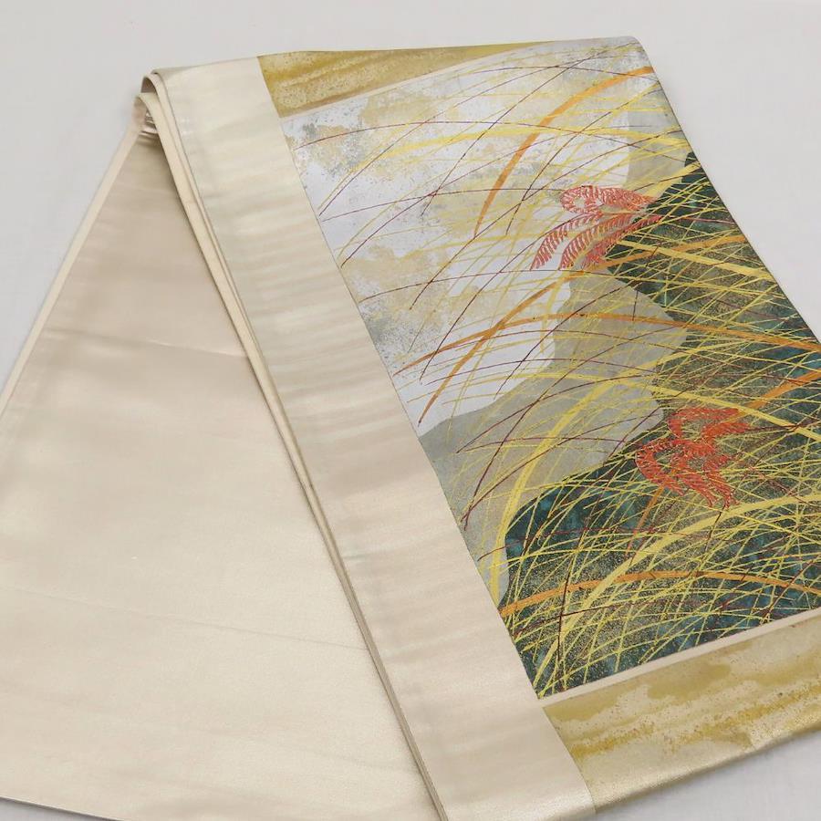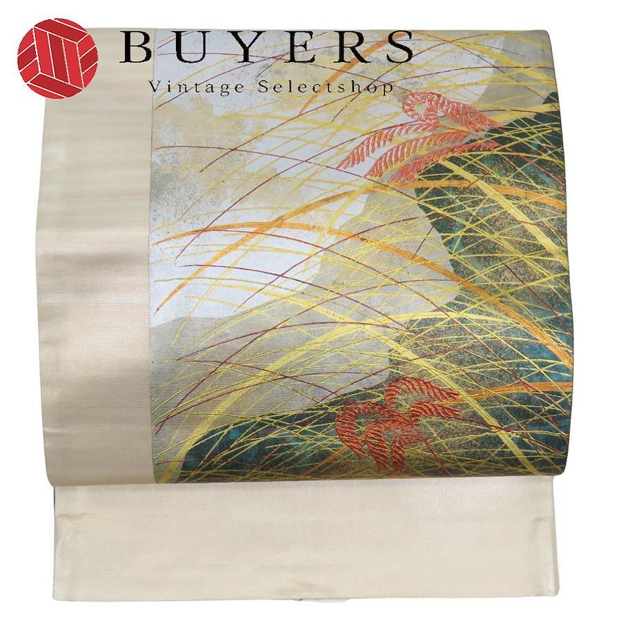 品名【中古】 袋帯 正絹(金銀糸除く) ゴールド シルバー マルチカラー 洒落 モダン おしゃれ レディース 女性