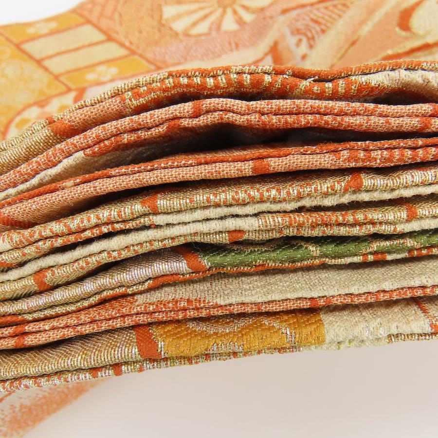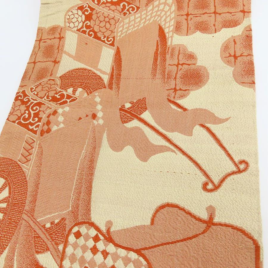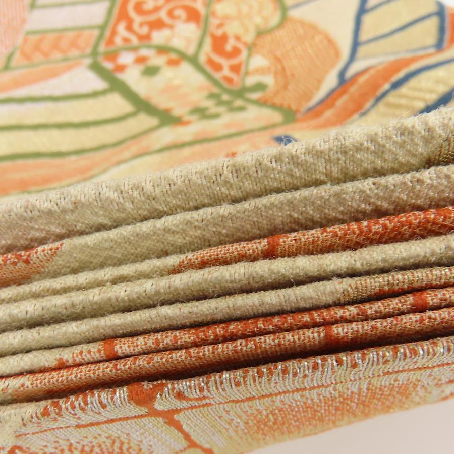 Pre-owned Fukuro Obi (Sash) - Silk (excluding gold and silver threads) - Beige, Orange, Gold, Silver - Full-length pattern - Maru Obi (Sash) - Imperial Carriage - Kimono - Women's