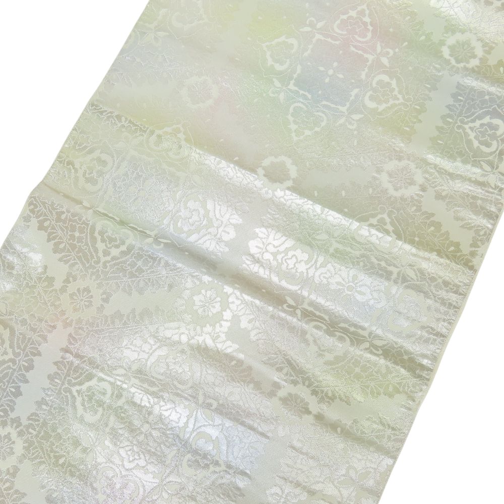 | 品名 | 【中古】 袋帯 亀甲更紗紋 やまと 正絹(金銀糸除く) シルバー クリーム系 虹色 光沢 六通柄 フォーマル レディース 女性 |