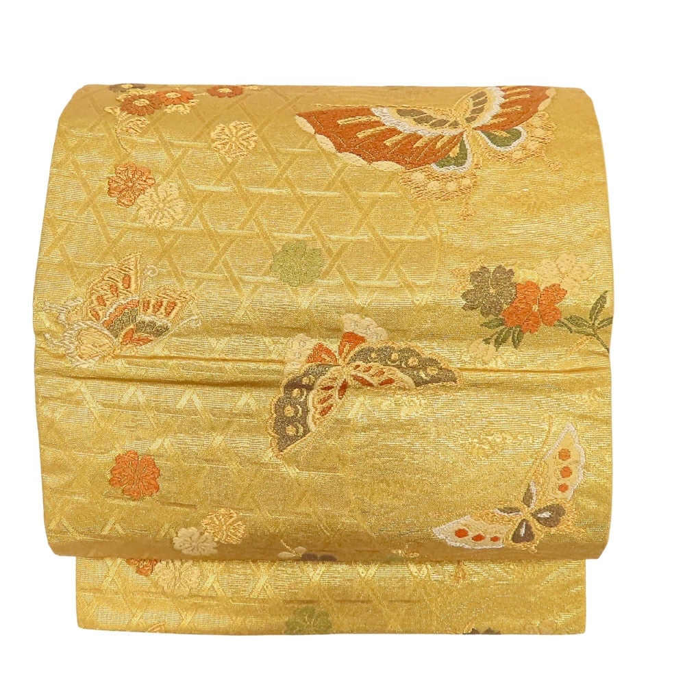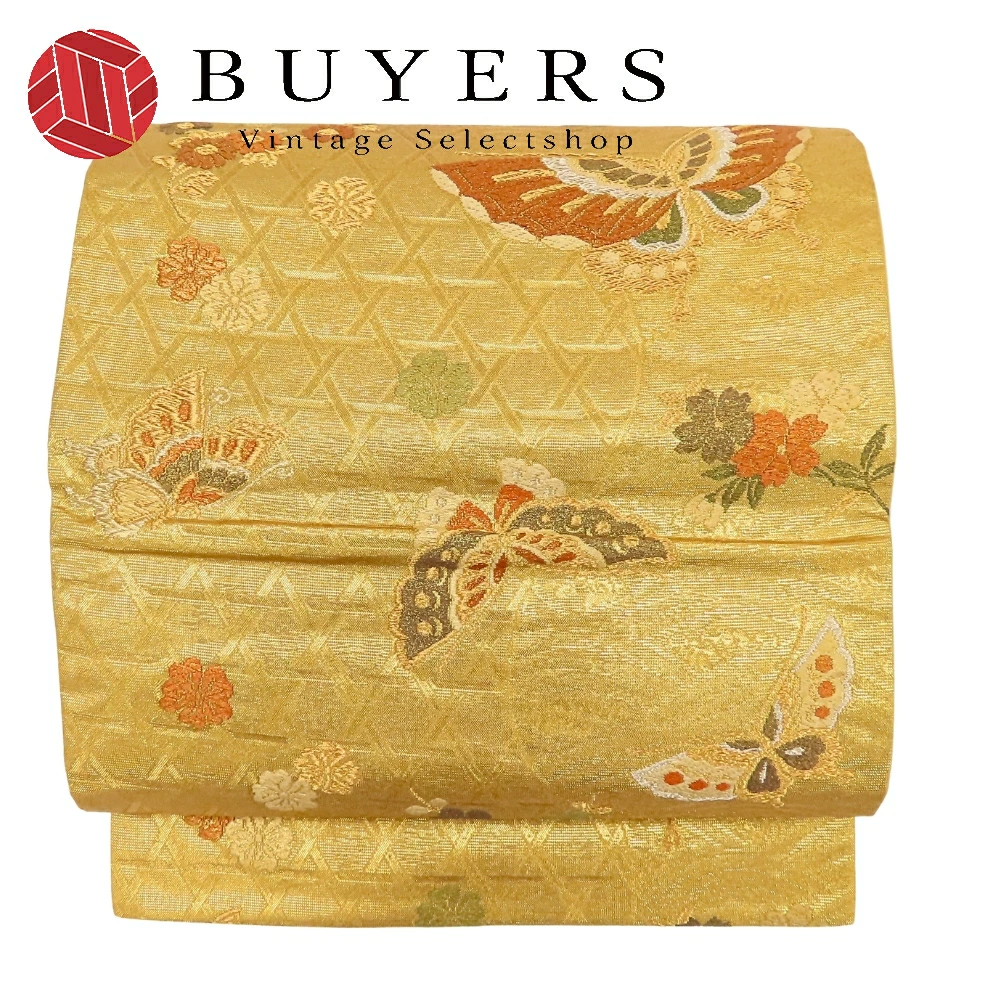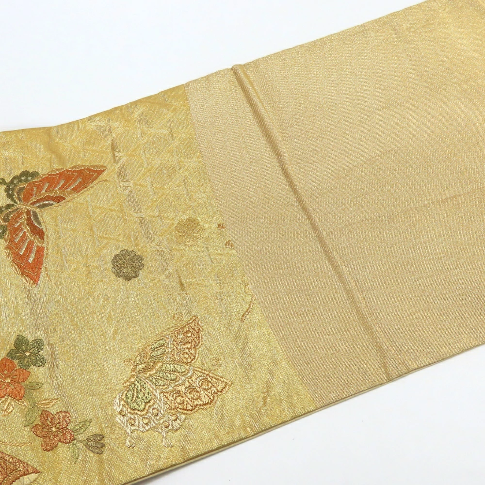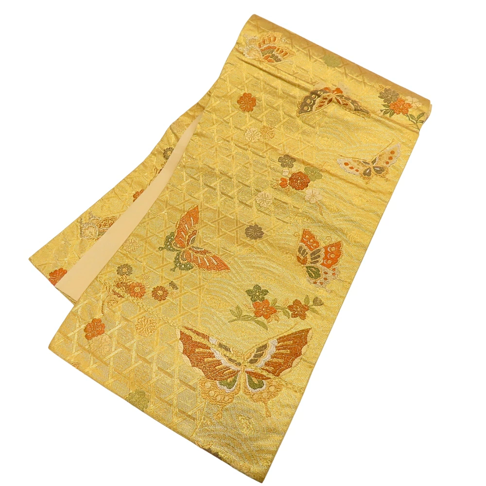 | サイズ | サイズ 全長:約 427cm 幅:約 31cm 帯の柄1:蝶 帯の柄2:花 重量:約950g |