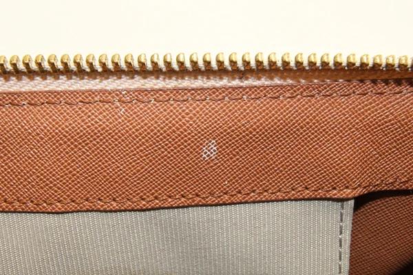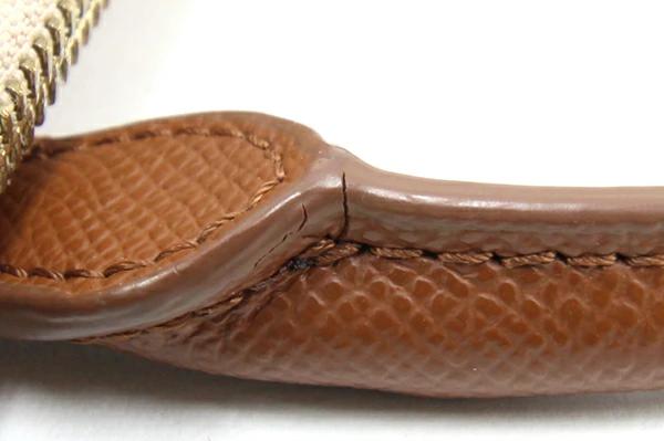 | 状態 | 外側:底角にスレ減りあり。フチ(コバ)所々にヒビ割れ、ファスナー生地に汚れあり。 内側:スレ、小キズ、薄汚れあり。 金具:小キズ、スレ、色落ちあり。 |