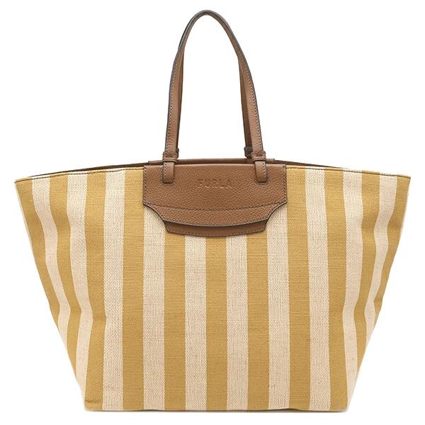 フルラ FURLA トートバッグ メラヴィリア キャンバス レザー イエロー×ベージュ ストライプ 黄 新品 未使用 ゴールド金具 WB00510 BX0635 レディース 【中古】