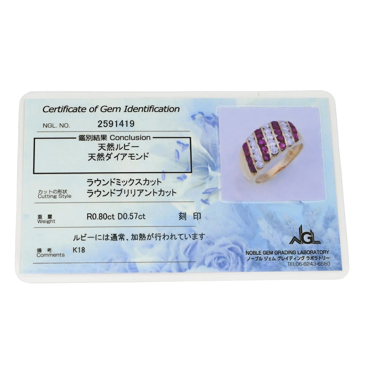 ゲインズボロウ GAINSBOROUGH リング 指輪 K18YG ルビー ダイヤモンド レッド×イエローゴールド 赤 ゲインズボロー Au750 18K 18金 ルビー ダイヤ ストライプ - 12号 レディース定番 人気 美品 【中古】