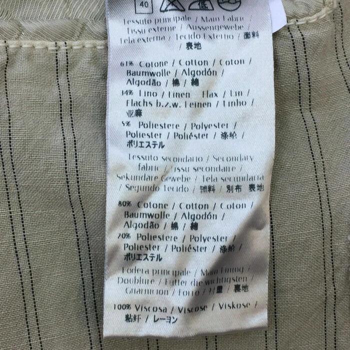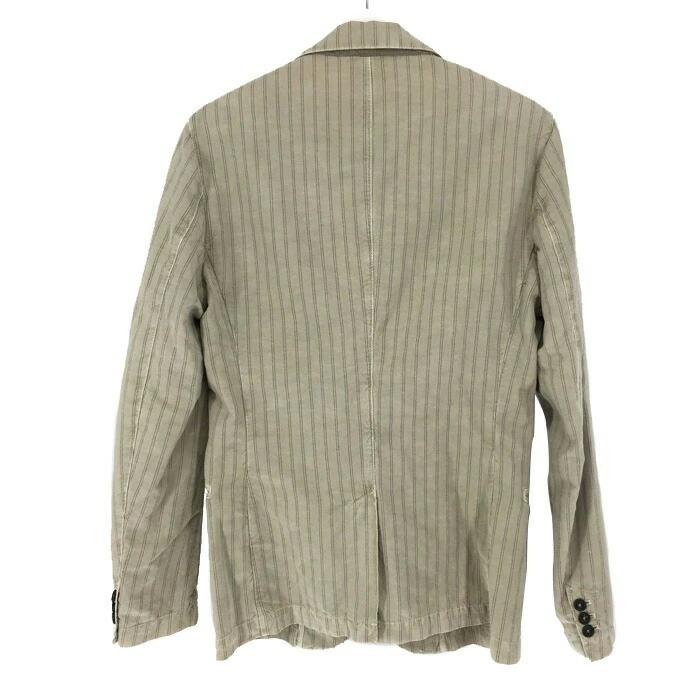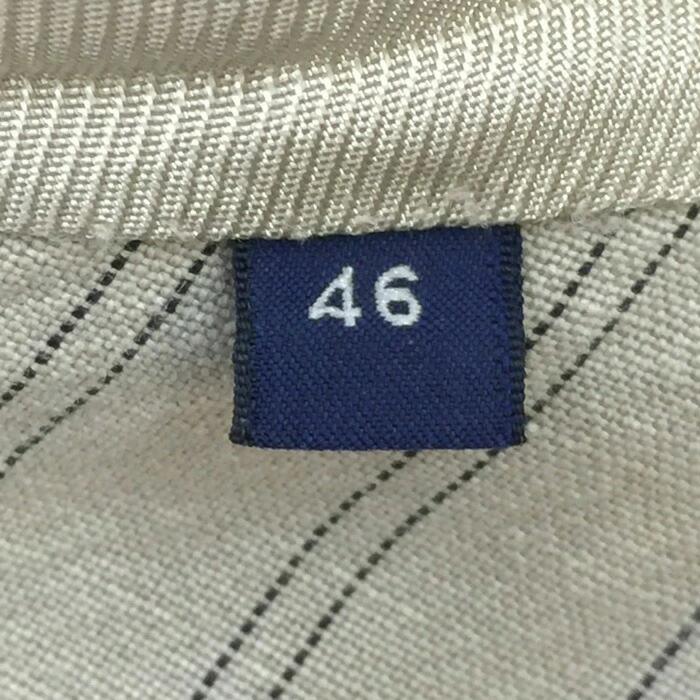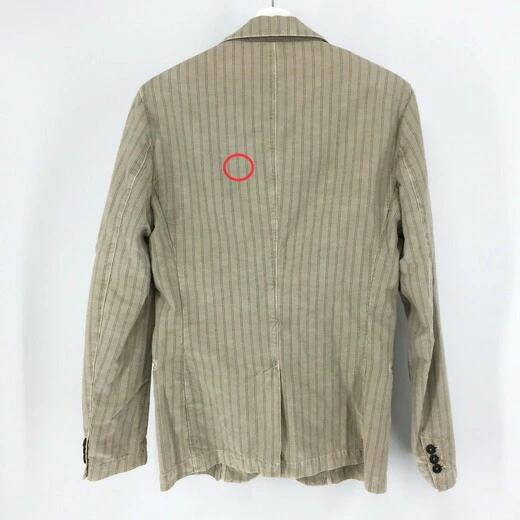| 商品説明 | 【管理番号】 013471s02i 【ブランド名】 GASガス 【アイテム】 麻混 テーラードジャケット 背抜き 【サイズ】 46 平置採寸(肩幅:約46cm・身幅:約52cm・袖丈:約67cm・着丈:約72.5cm) 【色・柄】 ベージュ ストライプ柄 【素材】 表地:綿61%麻34%ポリエステル5% 別布裏地:綿80%ポリエステル20% 裏地:レーヨン100% 【外観ランク】Bランク 【商品補足説明】 後身頃の上部に0.2cm程のシミがあります。 |