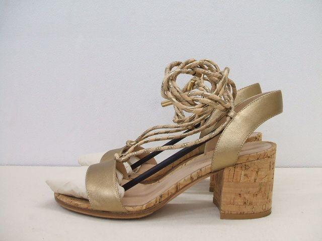 | 実寸サイズ | アウトソール全長:約-cm ソール最大幅:約9.5cm ソール厚:約-cm ヒール高:約6.5cm 全高:約13cm 備考 全高はかかとのストラップまでの高さ ※記載以外のサイズが合わないことを理由とした返品はできませんので、 記載部分以外で実寸サイズの気になる箇所があれば必ず購入前にご質問ください。 |