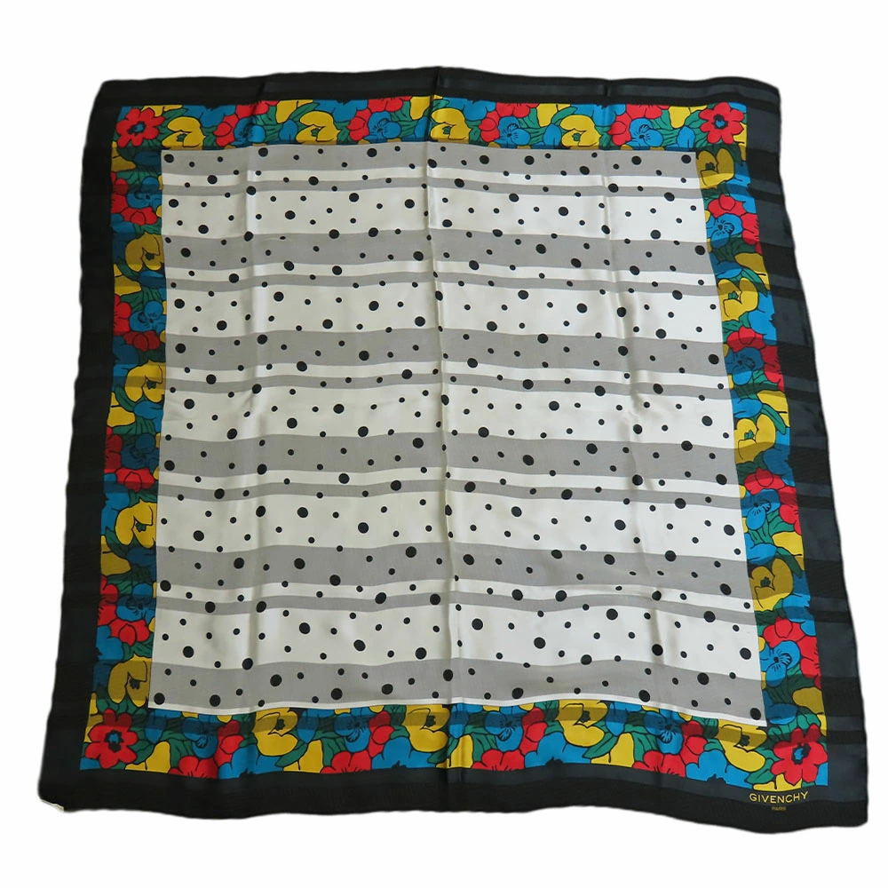 | 品名 | 【中古】 ジバンシー スカーフ シルク ホワイト ブラック マルチカラー ライセンス商品 ドット フラワー 大判 薄手 レディース 女性 Givenchy |