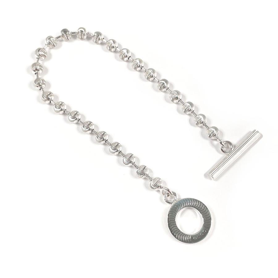 グッチの人気コレクション「ボールチェーン」ブレスレット。滑らかなシルバーにスタイリッシュな模様をあしらい、手元を華やかに引き立てます。幅広いスタイルにマッチするアクセサリーです。