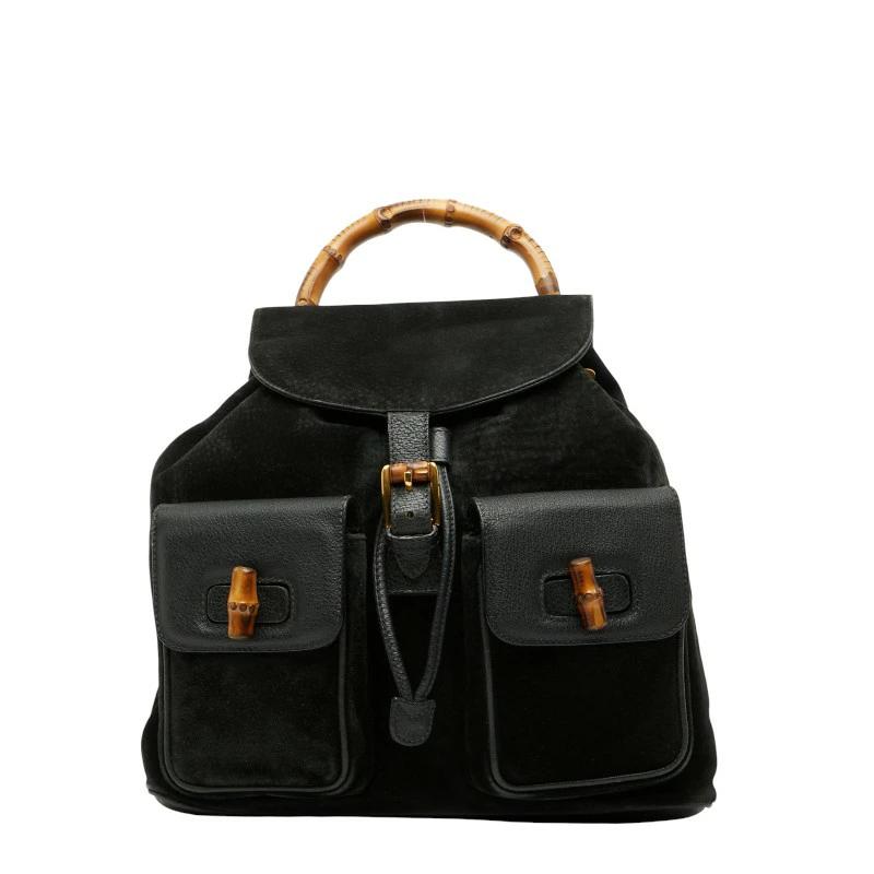 - グッチ バンブー リュック バックパック 003 2058 0016 ブラック レザー レディース GUCCI 【中古】