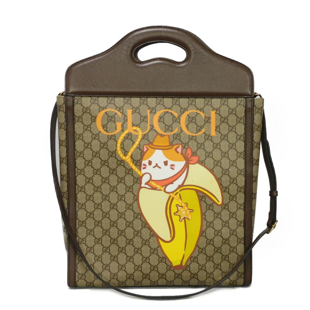 グッチのGGスプリームキャンバスにバナナモチーフとネコモチーフがプリントされた「ばなにゃ トートバッグ」ハンドバッグです。 |