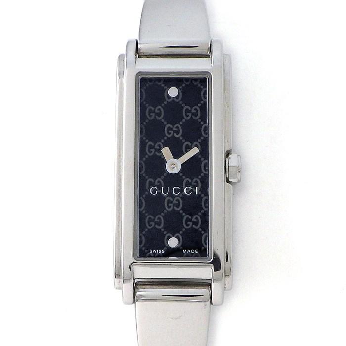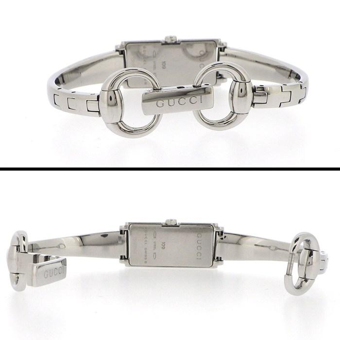 ■商品名GUCCI 腕時計 バングルウォッチ 109 ホースビット レクタンギュラー GG柄 ブラック文字盤 SS クオーツアナログ 【中古】