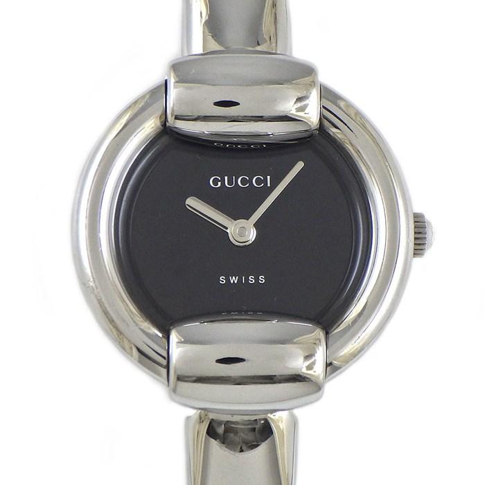 ■商品名GUCCI 腕時計 バングルウォッチ 1400L ラウンド ブラック文字盤 SS クオーツアナログ 【中古】