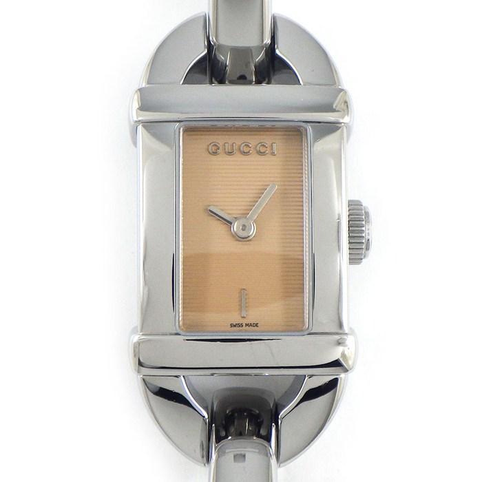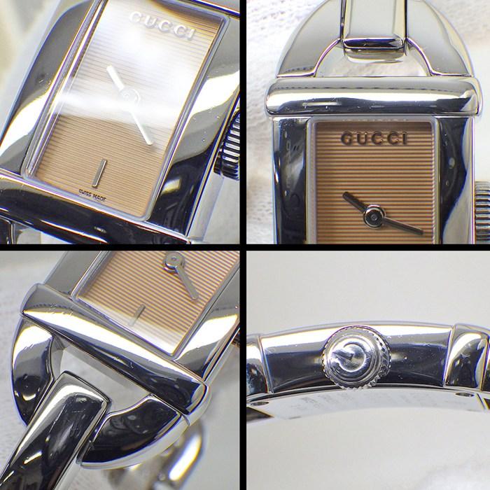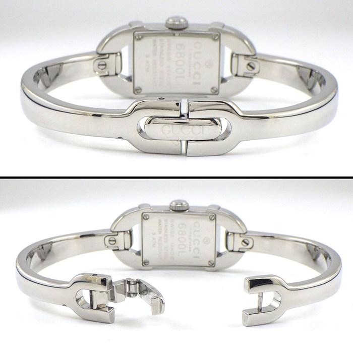 GUCCI 腕時計 バングルウォッチ 6800L ストライプ ギョーシェ レクタンギュラー ブラウン文字盤 SS クオーツアナログ 【中古】