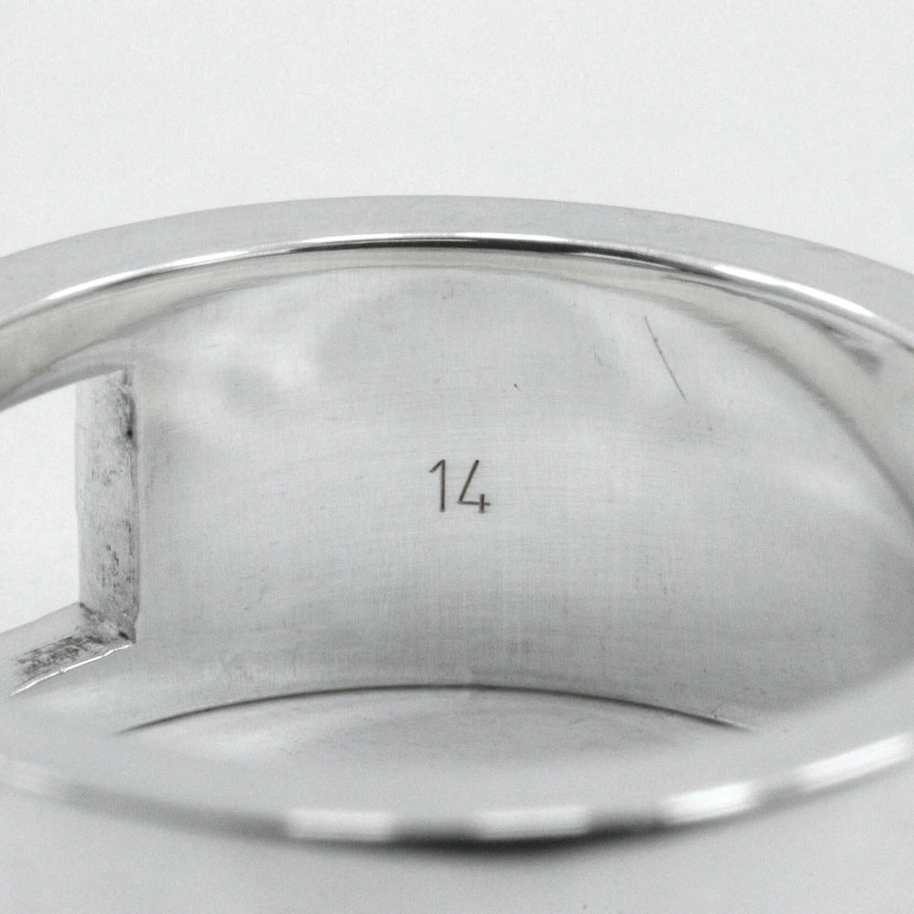 | サイズ | 表記サイズ:14 実寸サイズ:13号(弊社測定サイズ) ※中古品の為、実寸サイズは各ブランドの規格と多少の誤差が生じる場合がございます。 リング内径:約17.1mm リング幅(最大):約8mm |